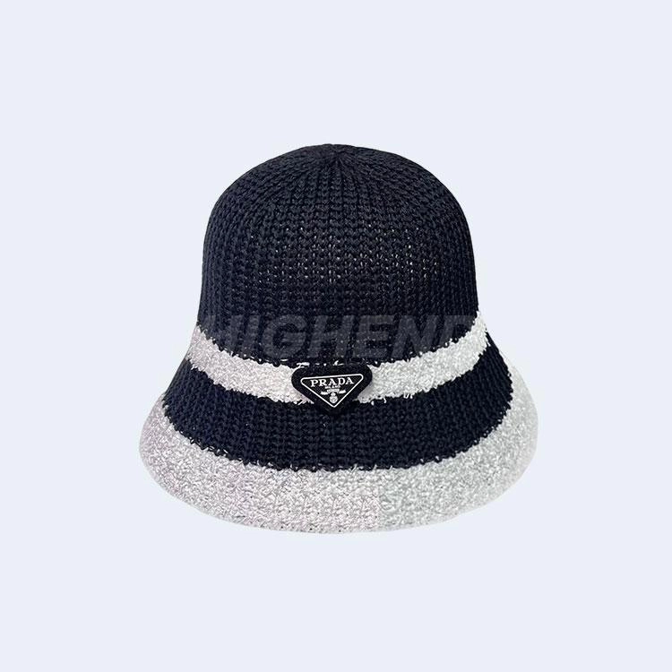 프라다 배색 베이지 니트 버킷 햇