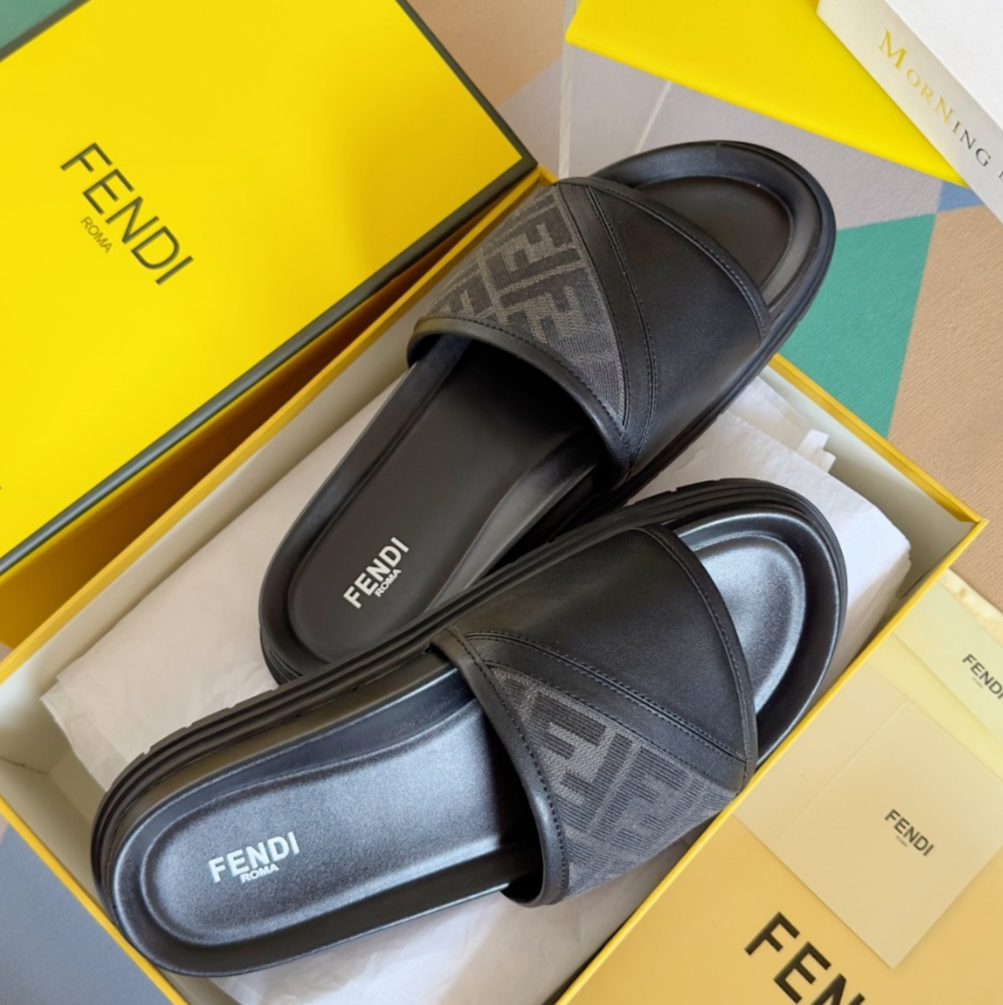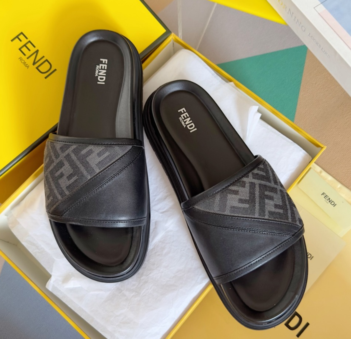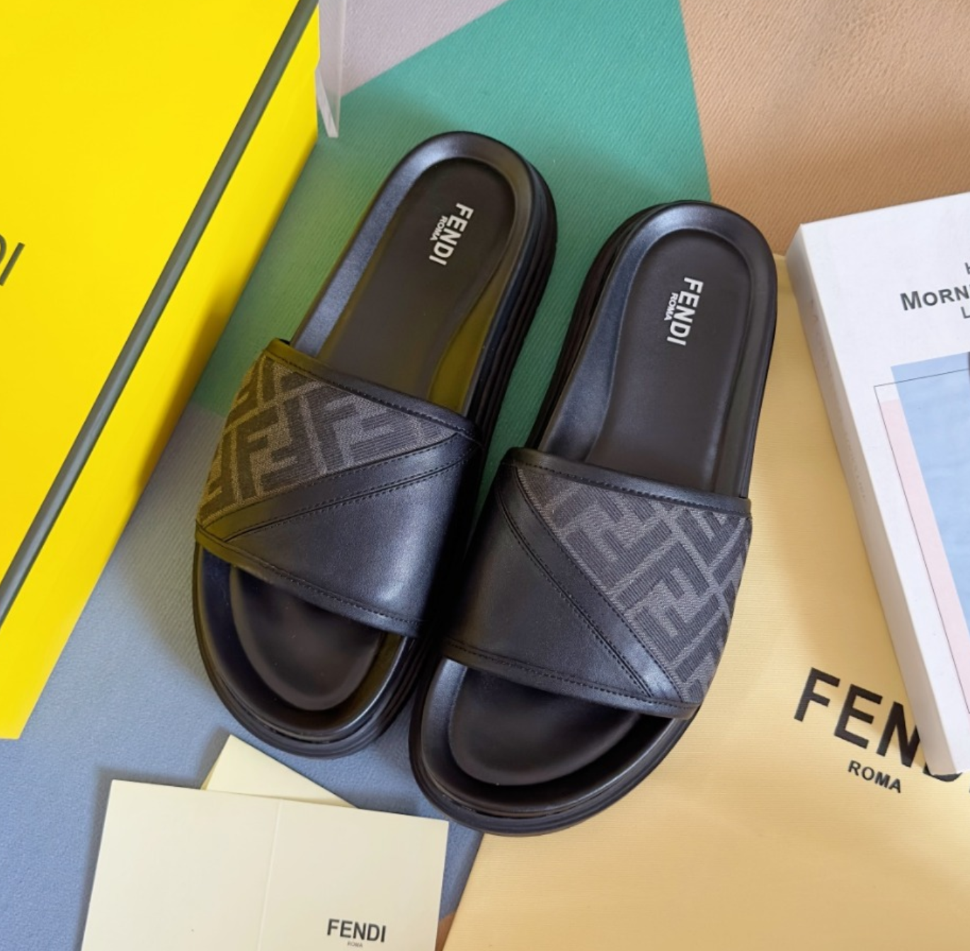 펜디 다이아고날 슬라이드 샌들