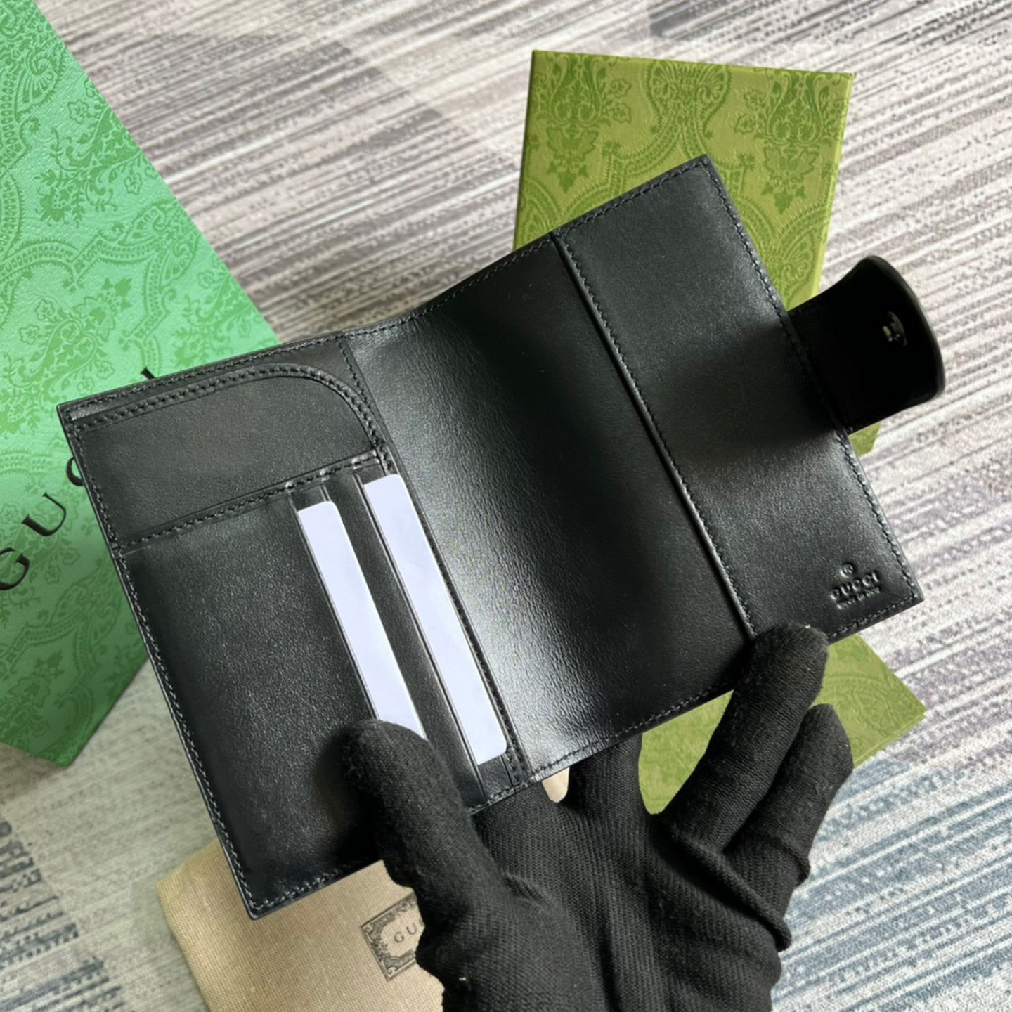 구찌 GG 로고 엠보스 플립 여권지갑