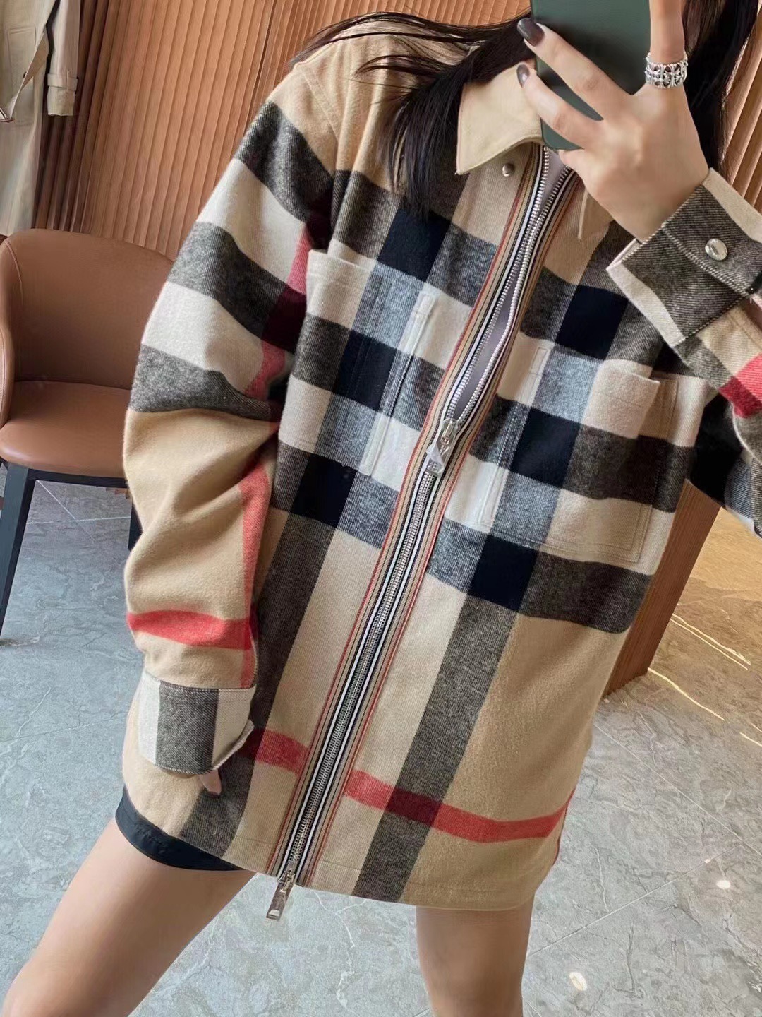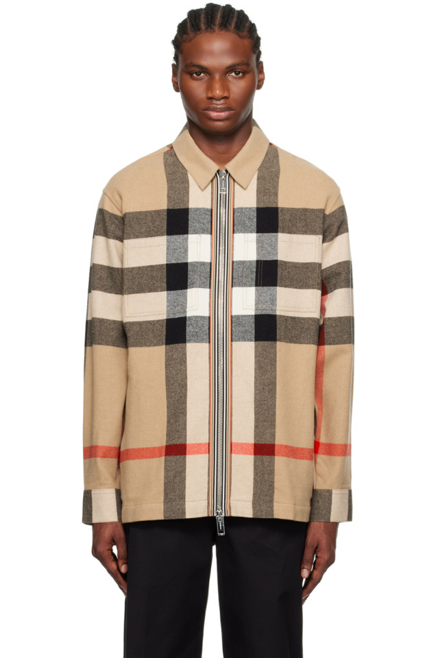 버버리 체크 울 코튼 오버 셔츠 재킷