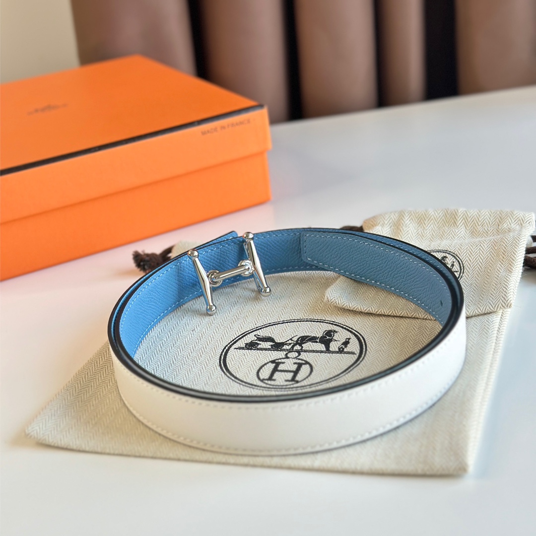 에르메스 MORS H 리버서블 화이트 벨트 은장 24mm