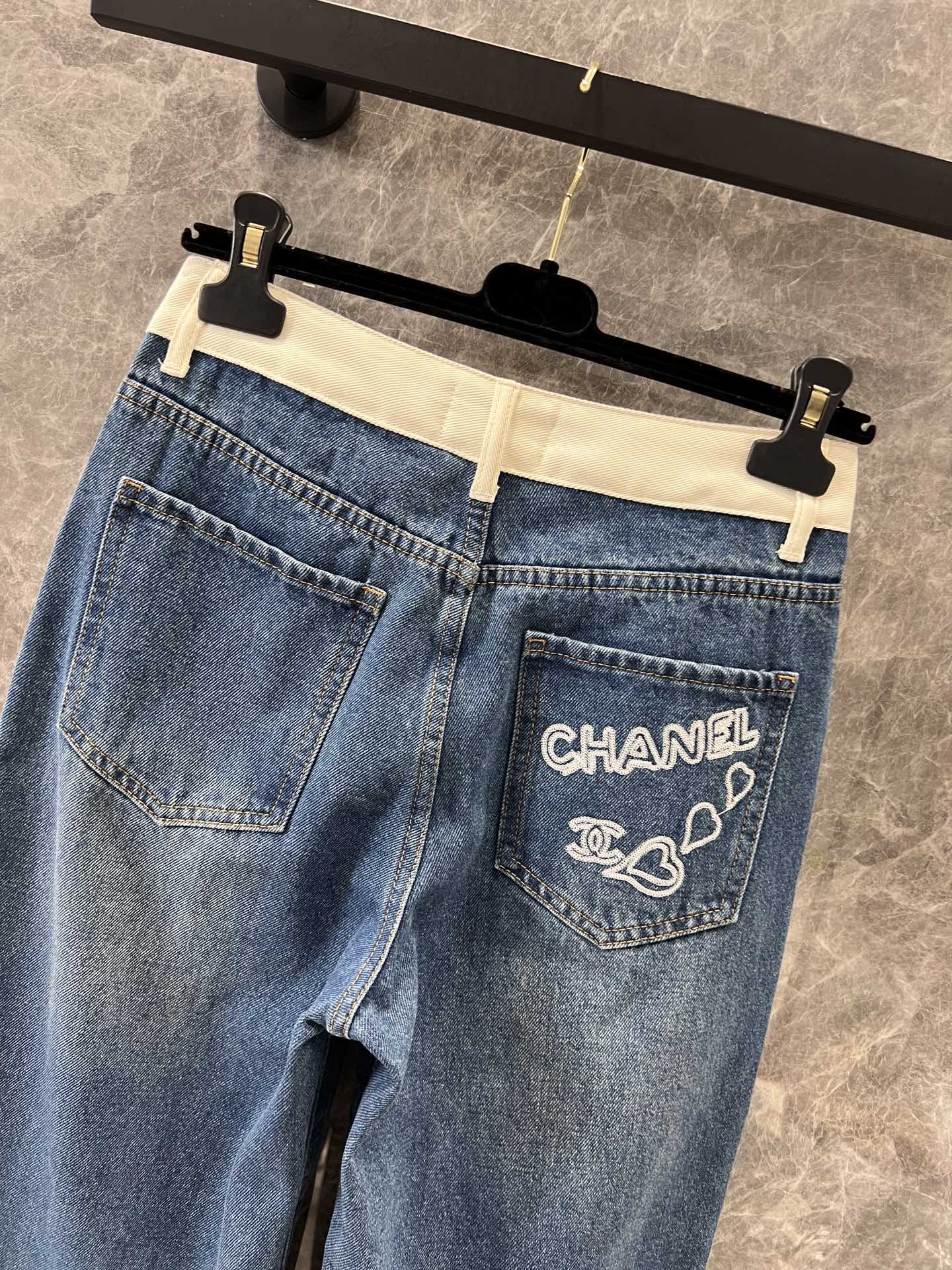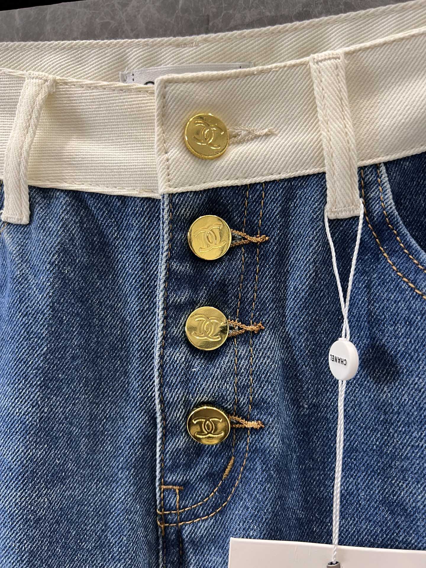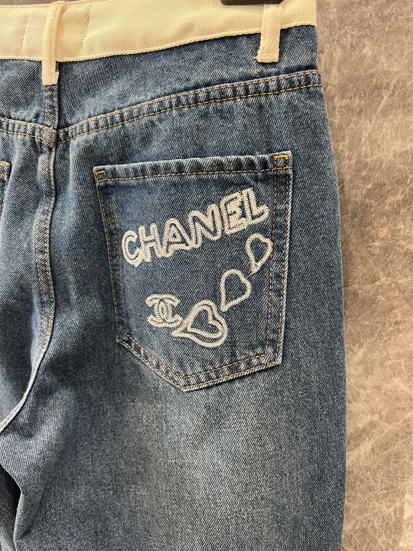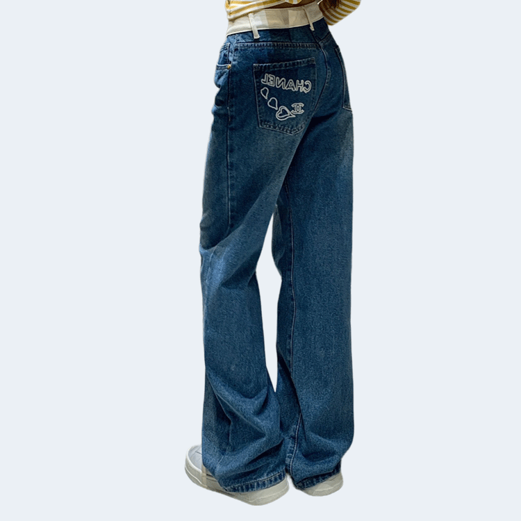 샤넬 포켓 로고 포인트 하이웨스트 진