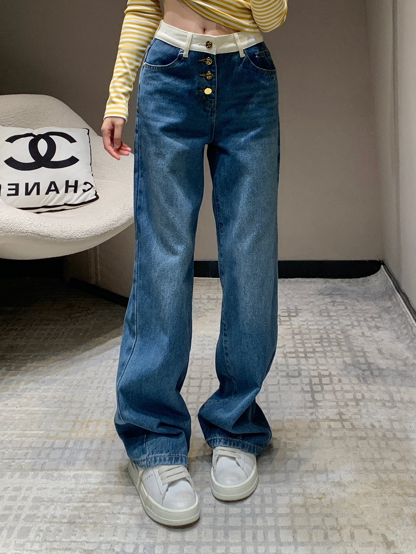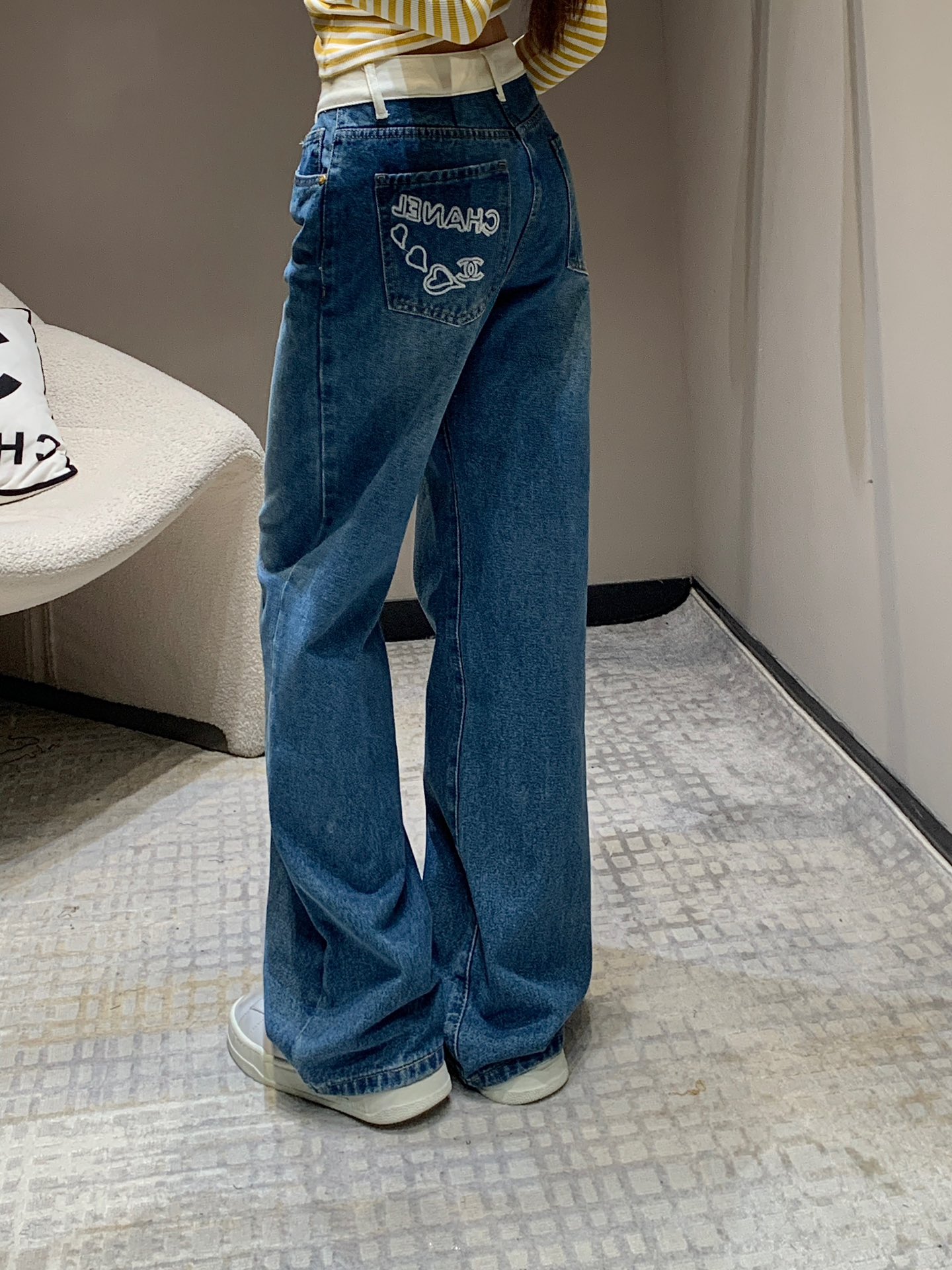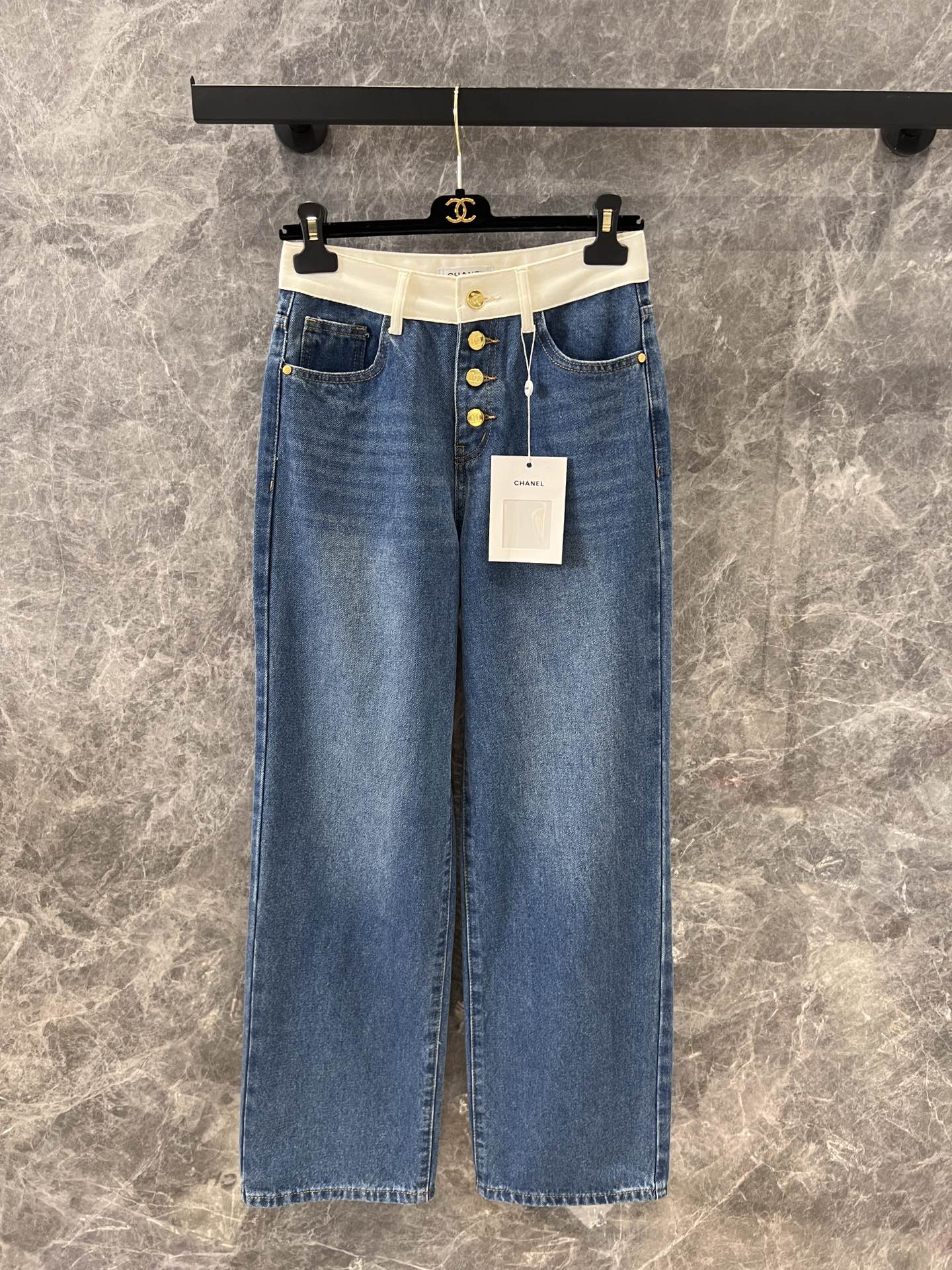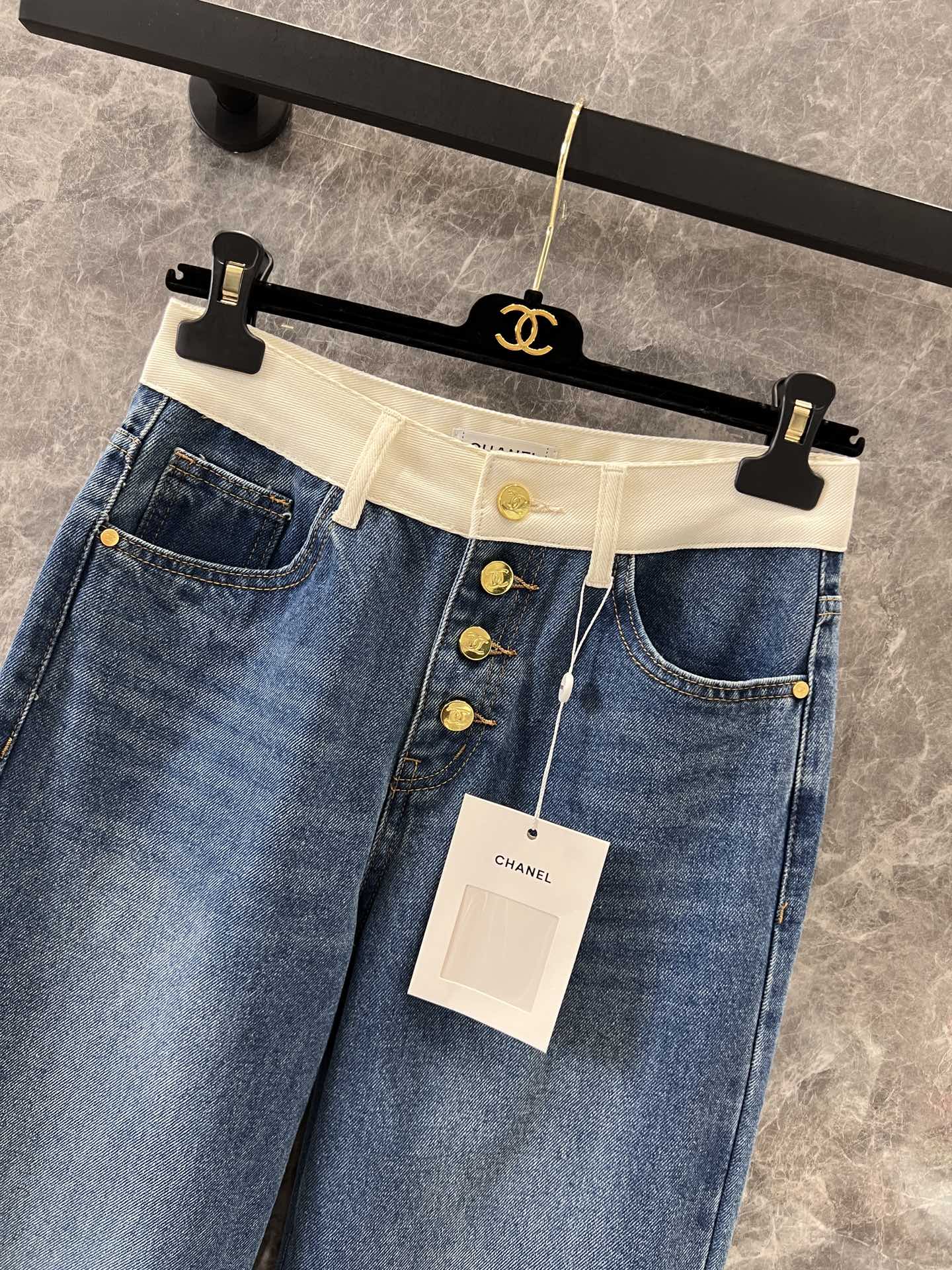 샤넬 포켓 로고 포인트 하이웨스트 진