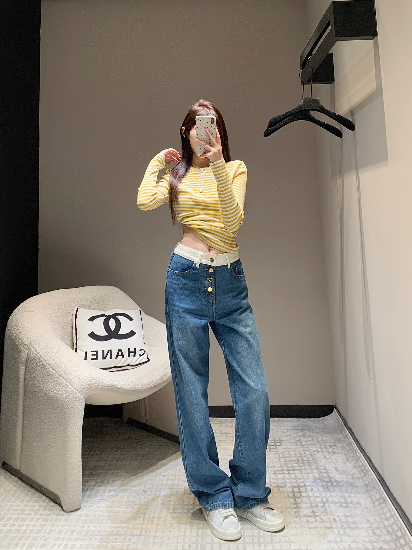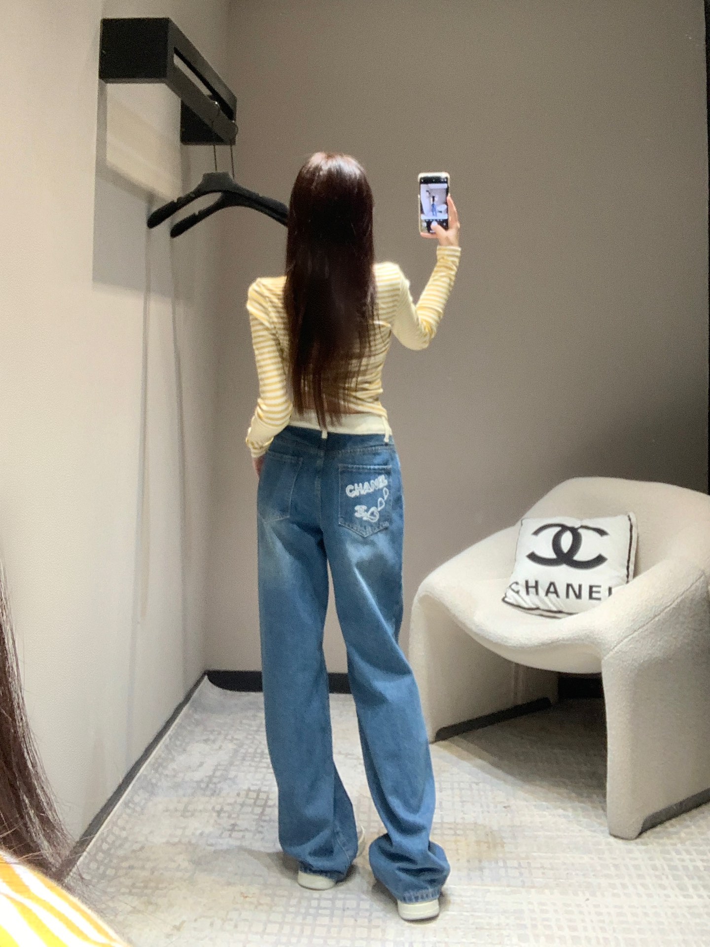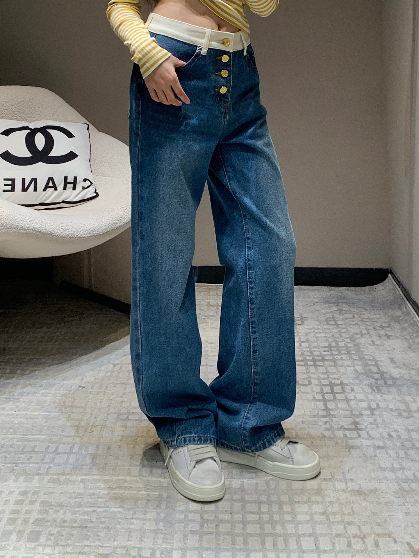 샤넬 포켓 로고 포인트 하이웨스트 진