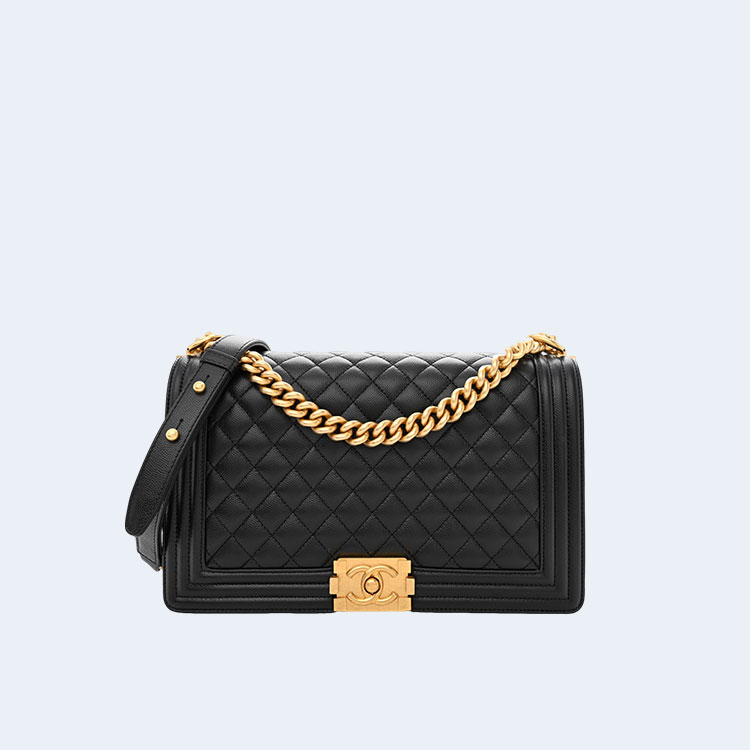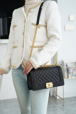 샤넬 보이백 미디움 카프스킨 보이백 블랙 골드