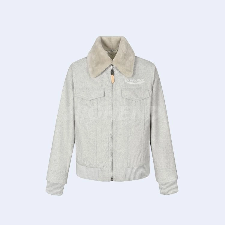 루이비통 울 블루종 위드 시어링 칼라 그레이