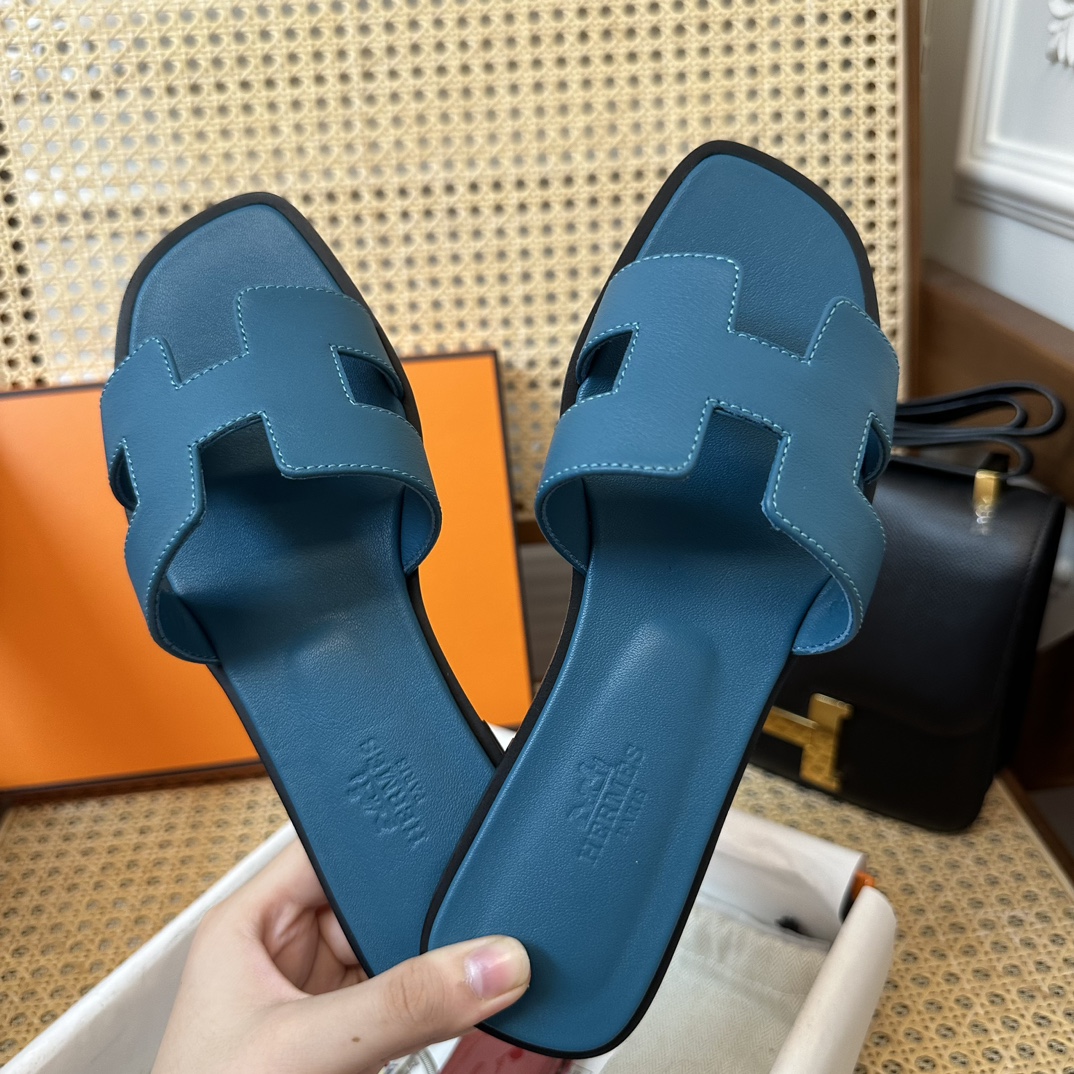 에르메스 오란 샌들 카프스킨 & 블루 에메랄드