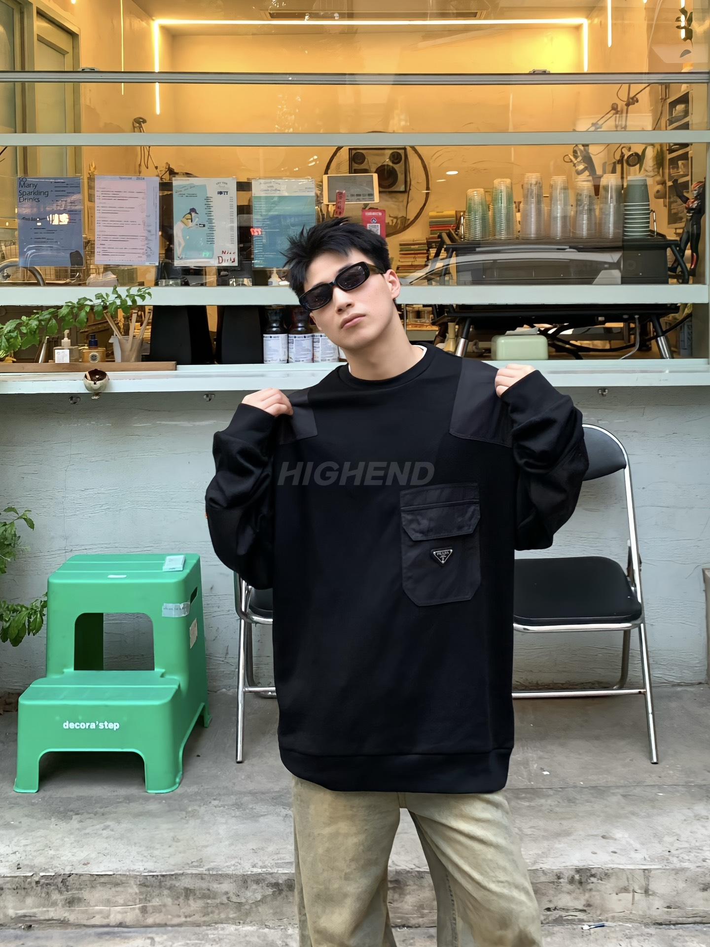 프라다 테크니컬 코튼 후디 블랙