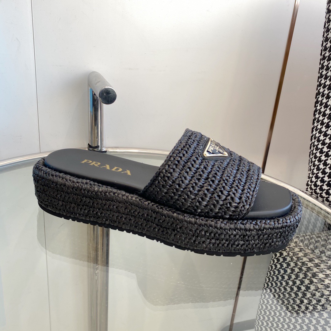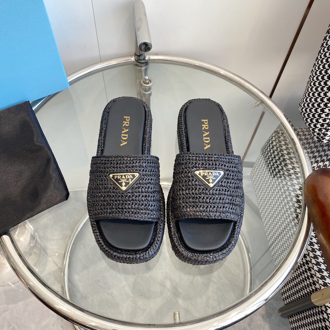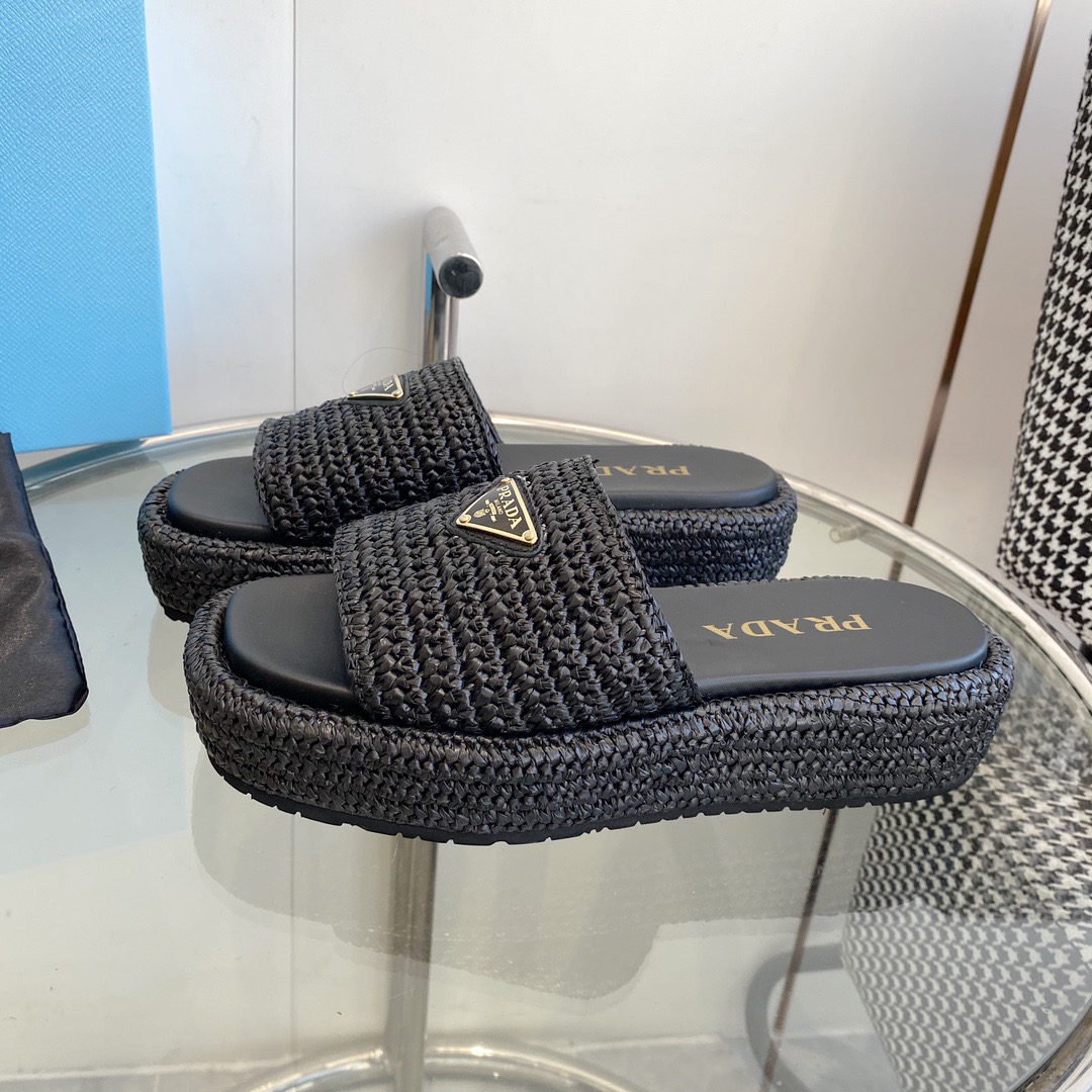 프라다 크로셰 플랫폼 슬라이드