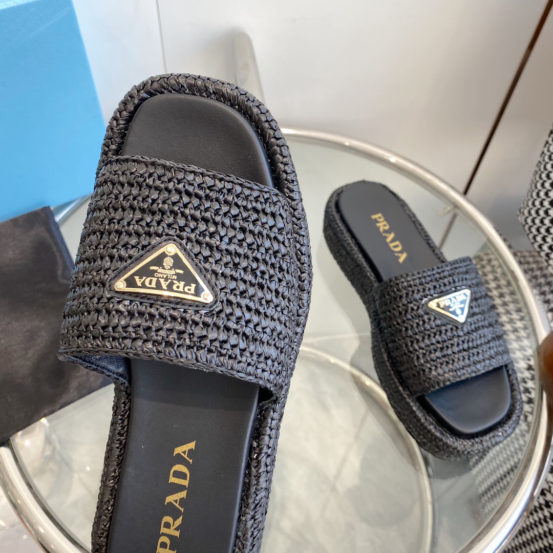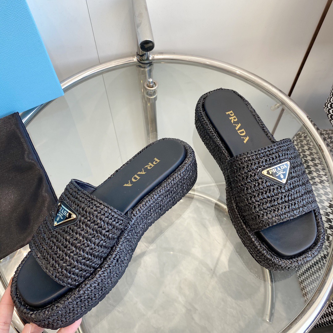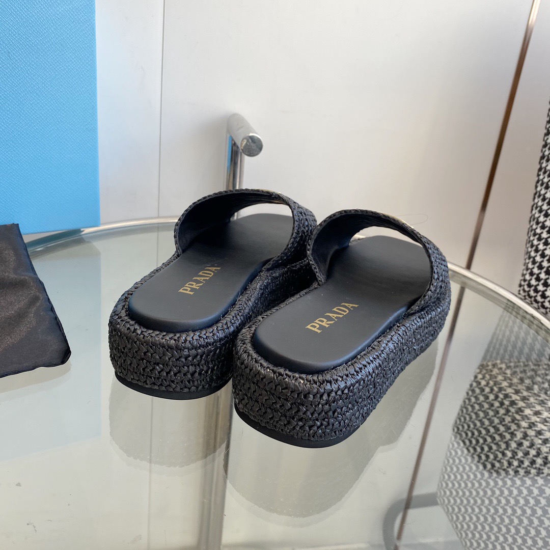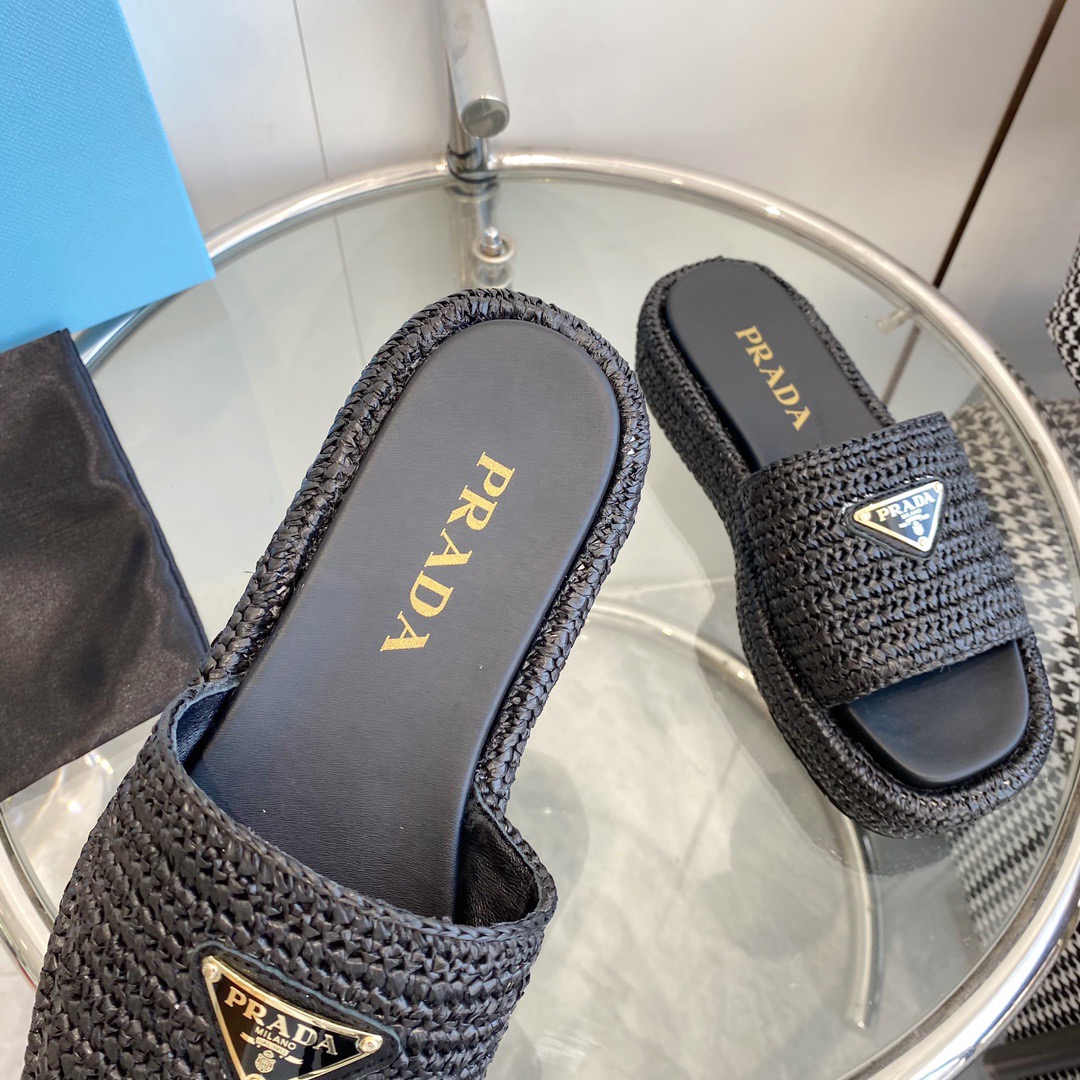 프라다 크로셰 플랫폼 슬라이드