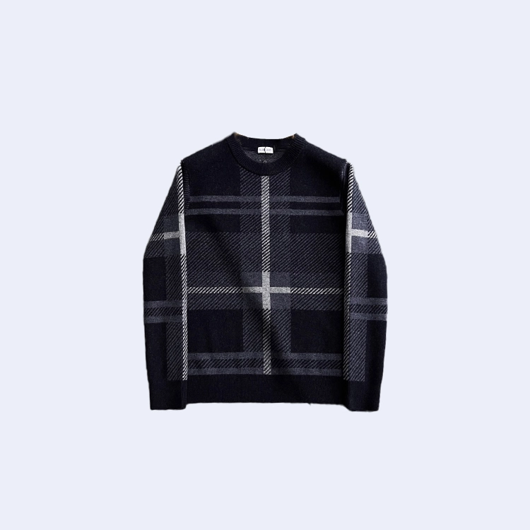 버버리 체크 패턴 크루넥 니트 스웨터