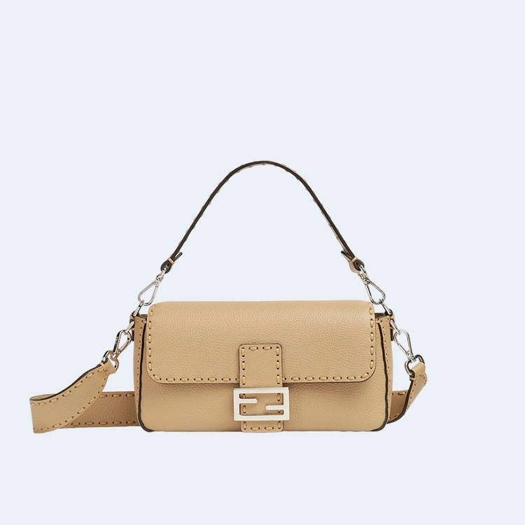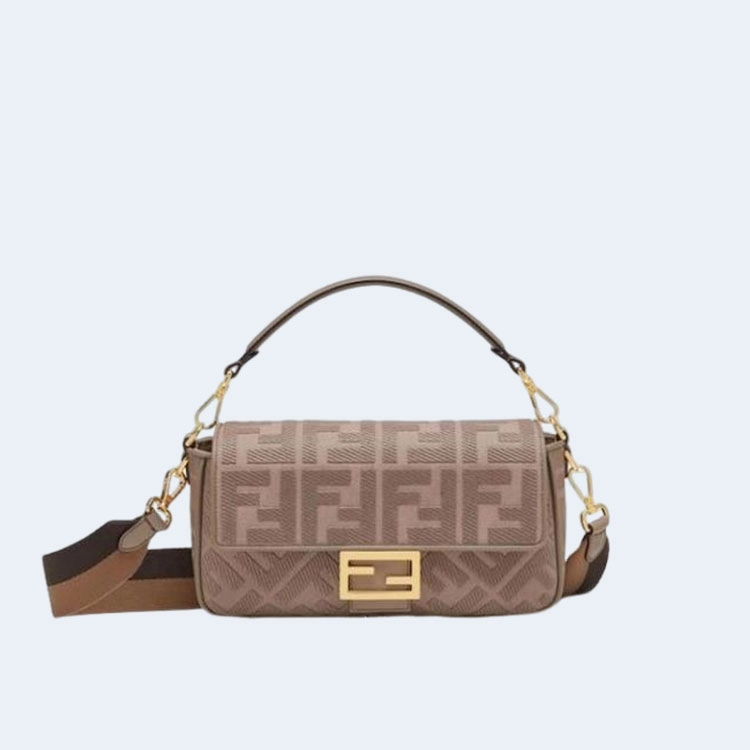 펜디 미니 바게트 FF 모티프 레더백 브라운