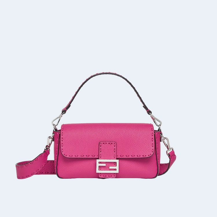 펜디 미니 바게트 FF 모티프 레더백 핑크