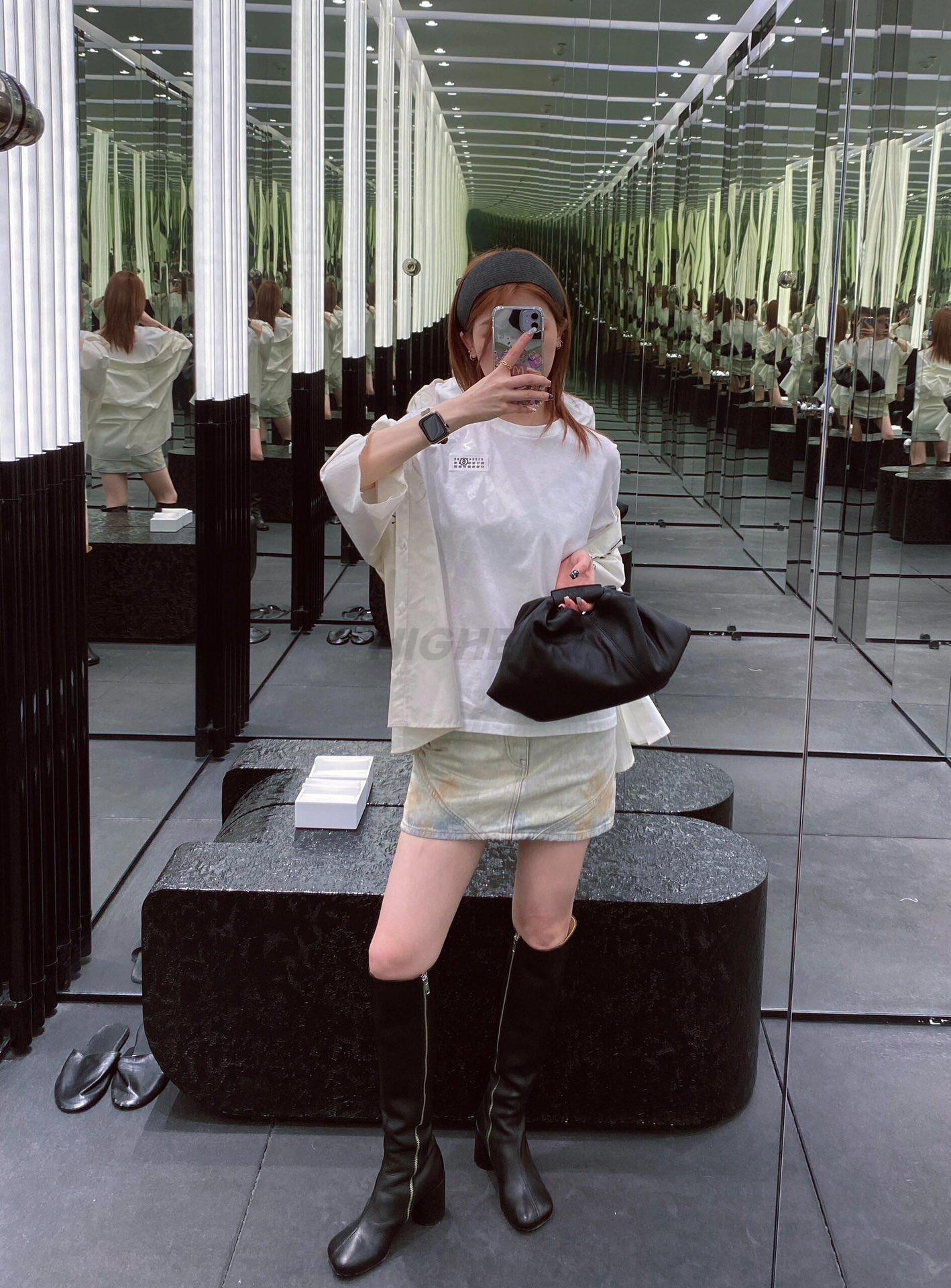 메종마르지엘라 테이핑 로고 태그 티셔츠 화이트