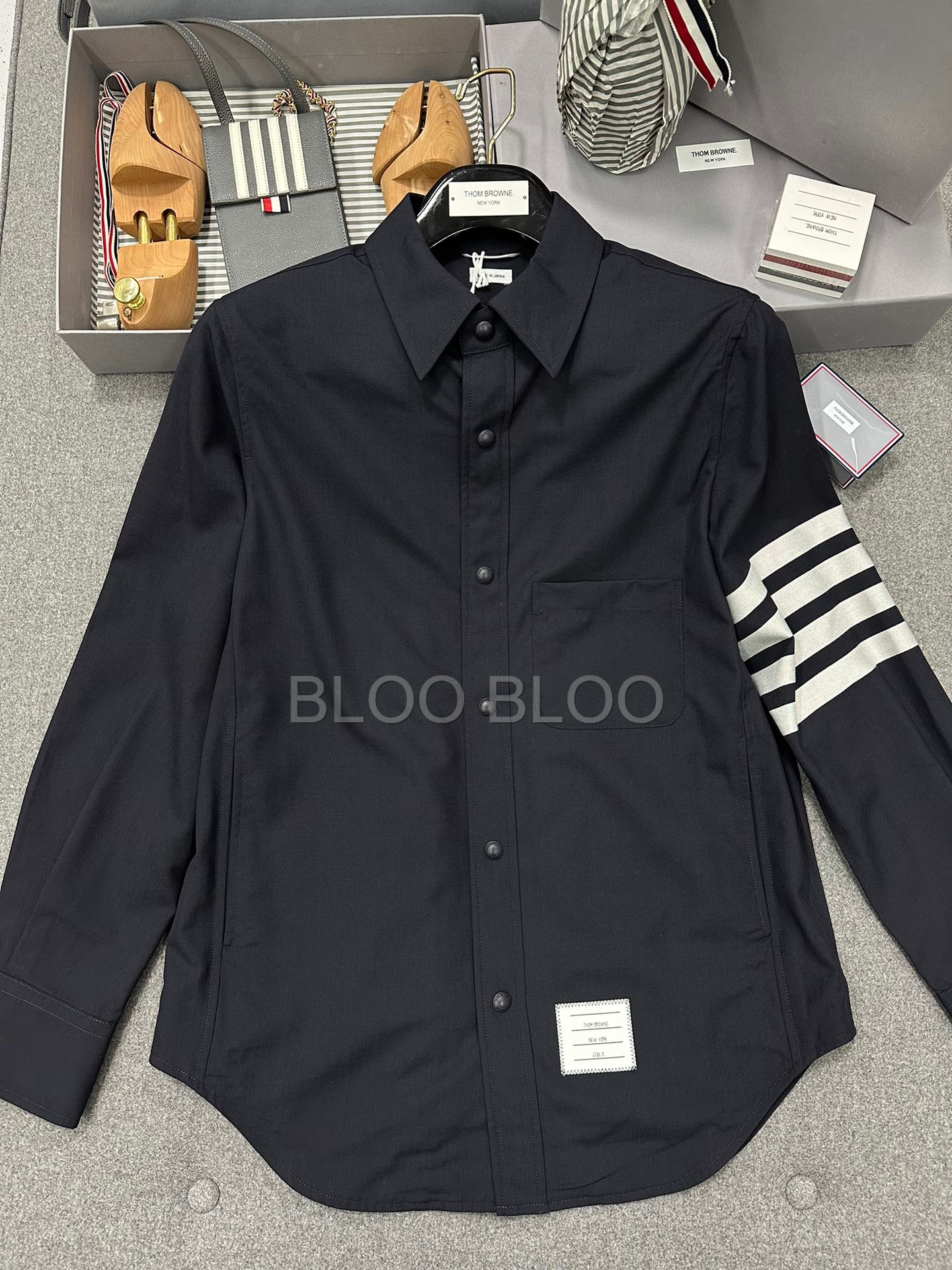 톰브라운 4-바 소매 셔츠