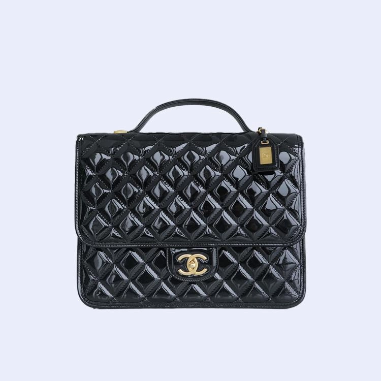 샤넬 22k 라지 백팩 블랙 페이턴트 카프스킨 골드 메탈