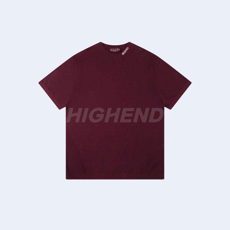 구찌 인타르시아 실크 코튼 티셔츠 버건디