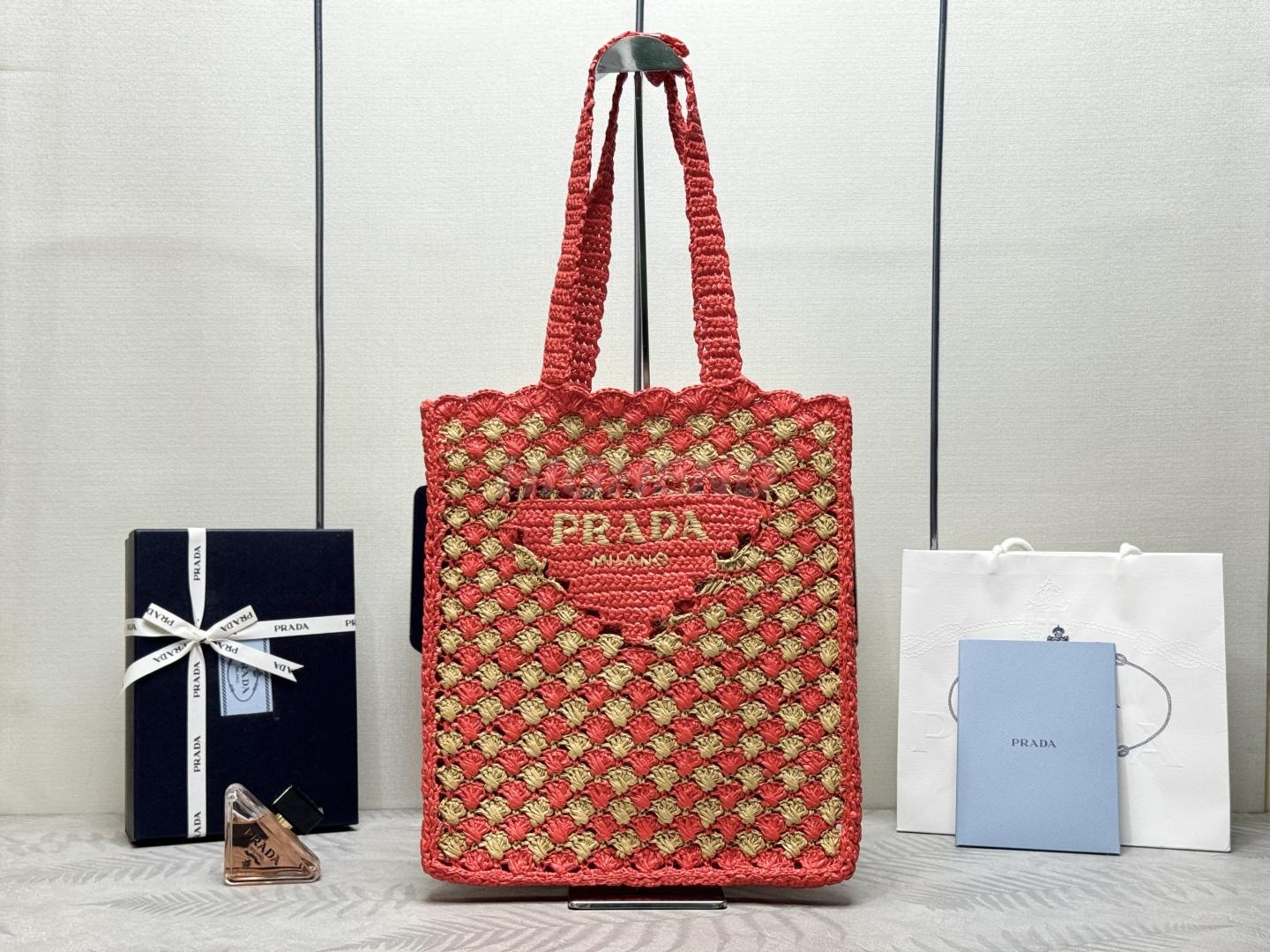 프라다 크로쉐 토트백 오렌지 카라멜