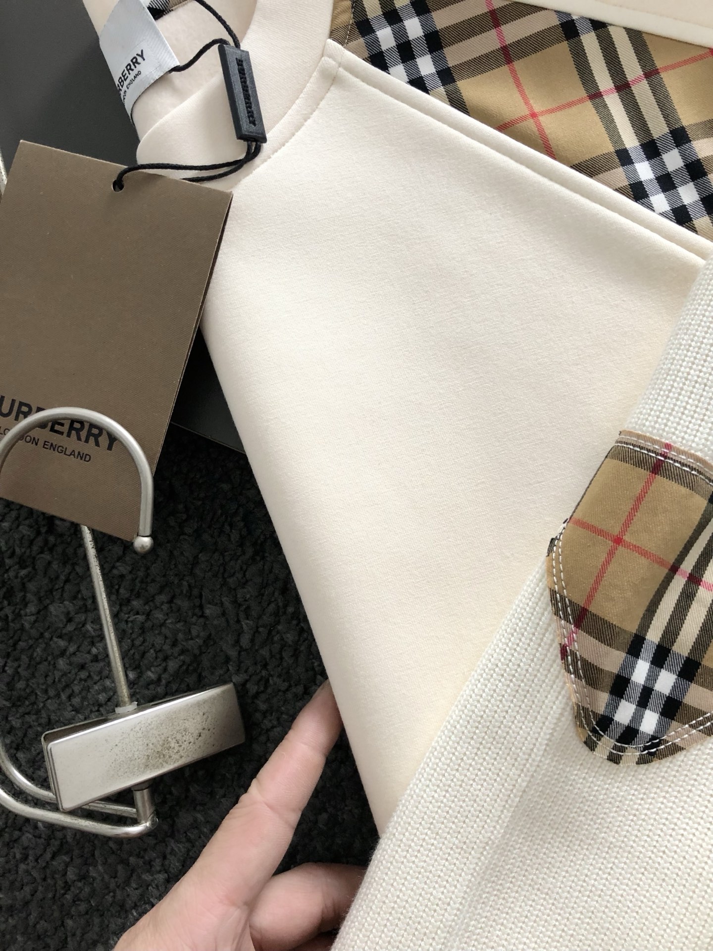 버버리 니트 소매 플레드 자수 안감