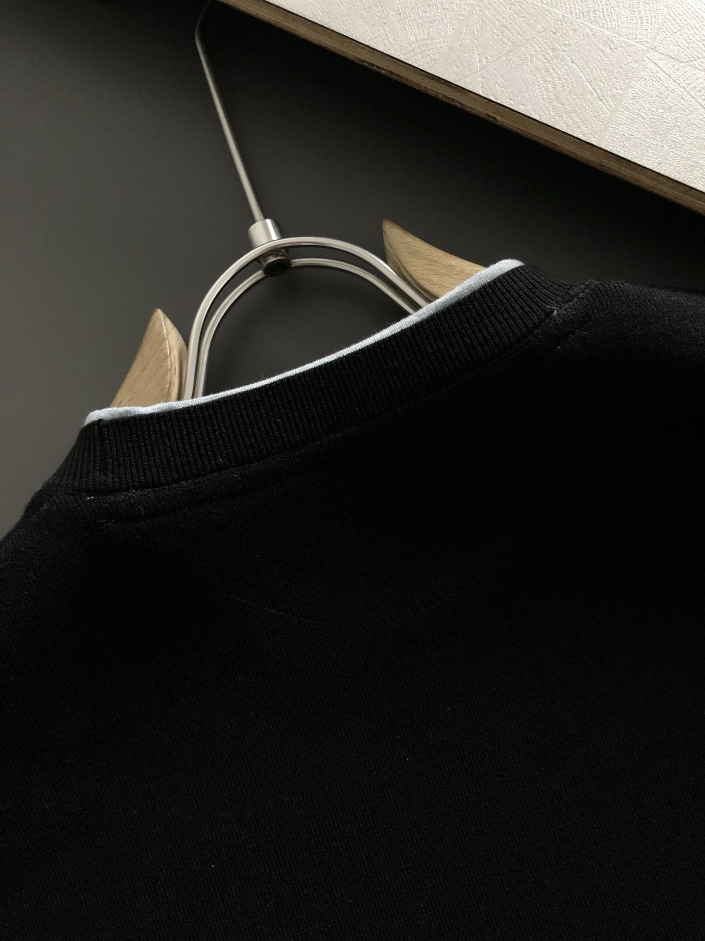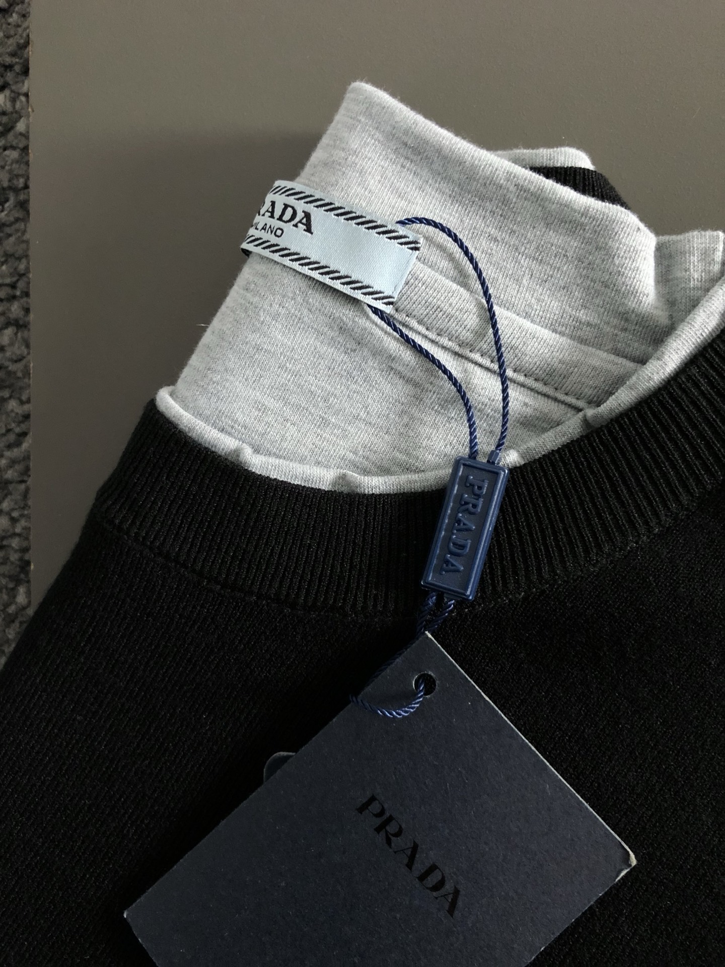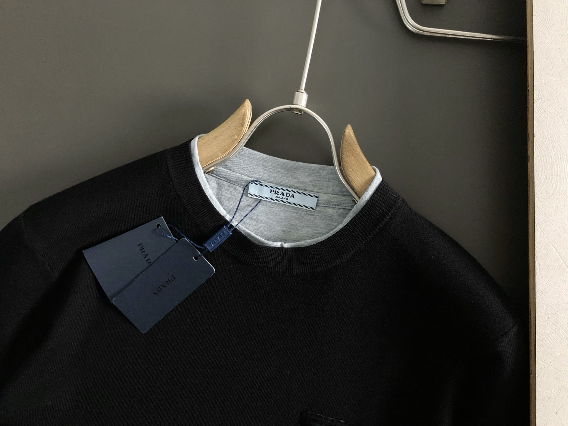 프라다 블랙 앤 그래이 컬러매칭 더블 레이어 칼라 퓨전 울 반팔