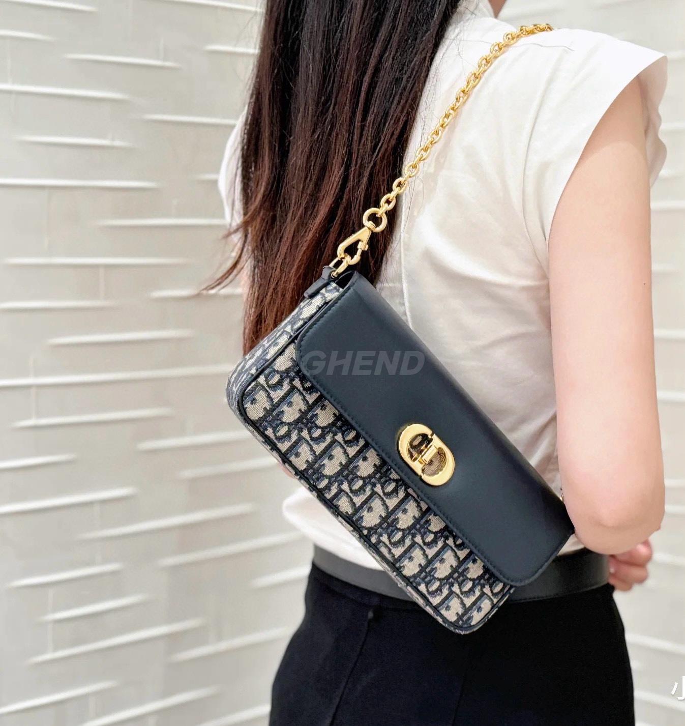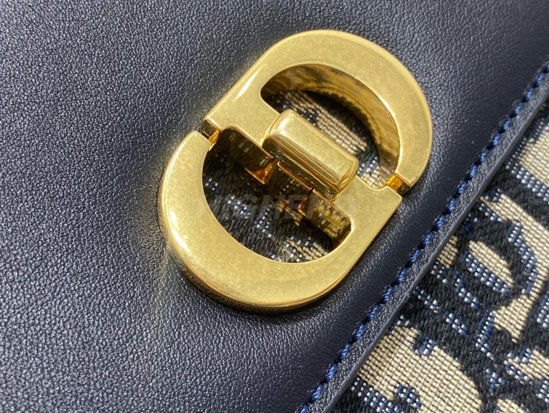 디올 30 몽테뉴 에비뉴 이스트 웨스트 더블 캐리 미니 백 디올 오블리크 자카드 & 스무스 카프스킨 블루