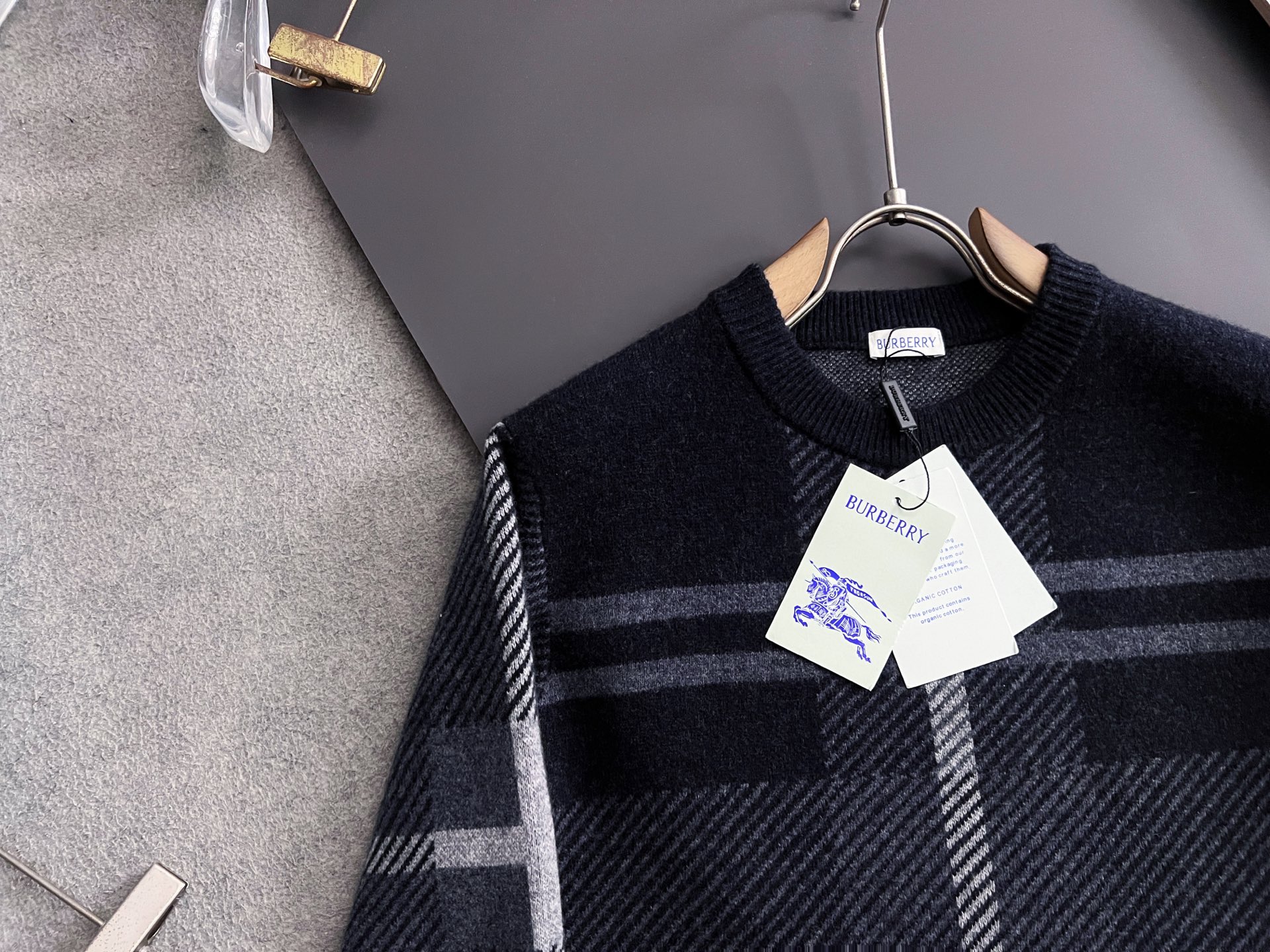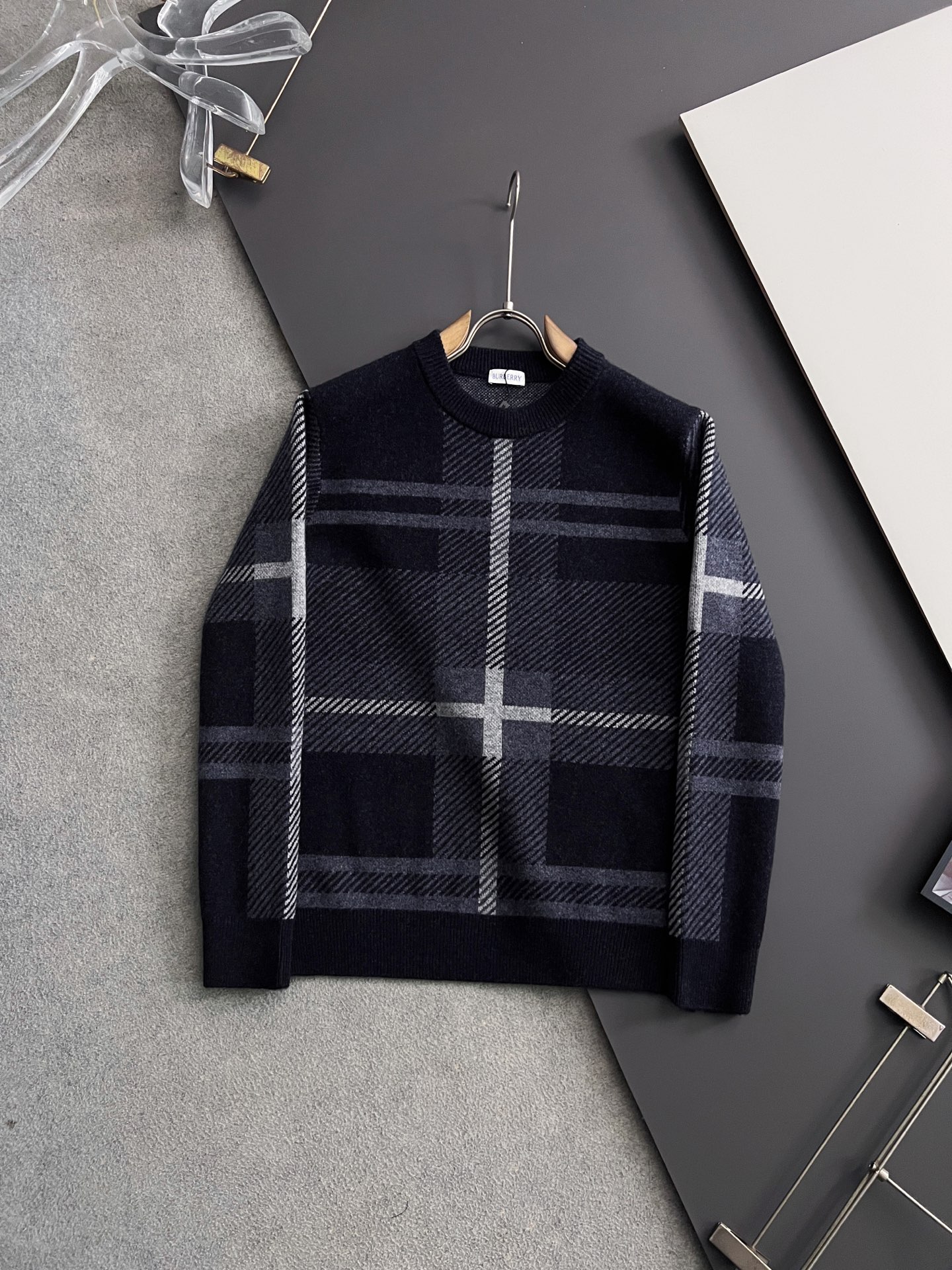 버버리 체크 크루넥 니트 스웨터