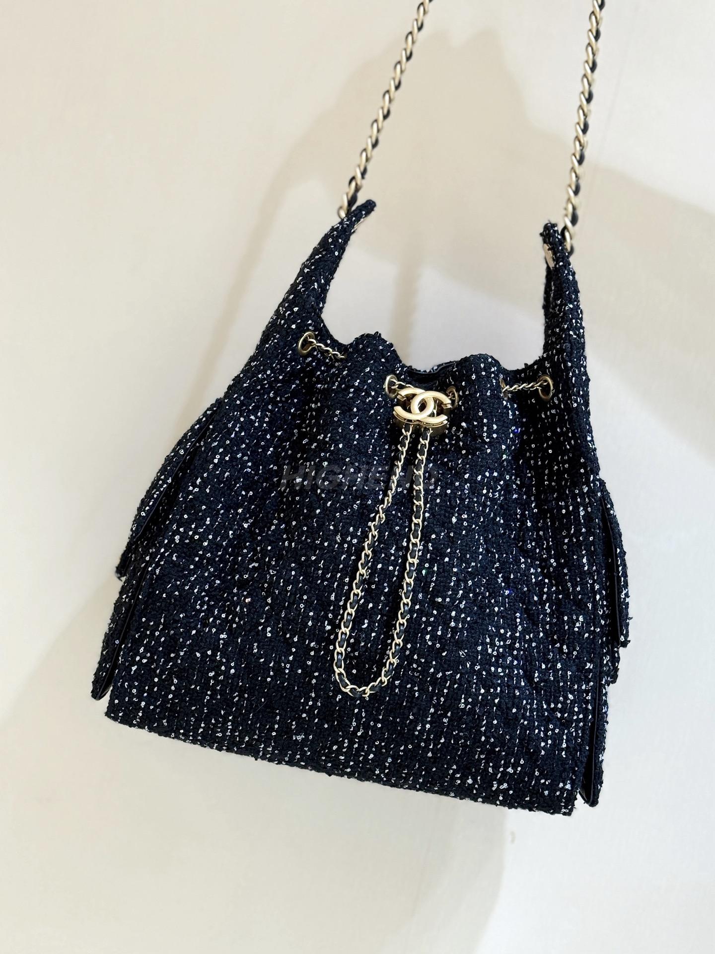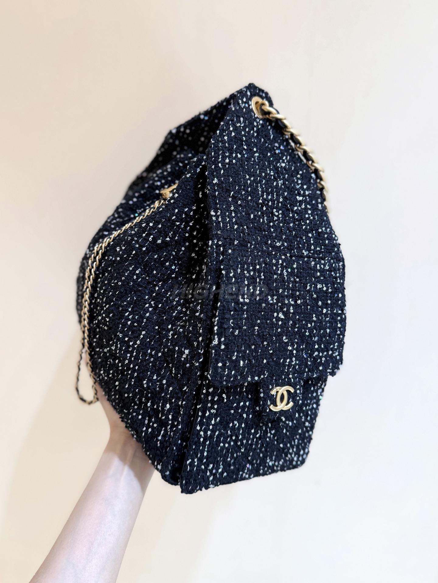 샤넬 트위드 뉴 호보백 금장 로고 캐비어