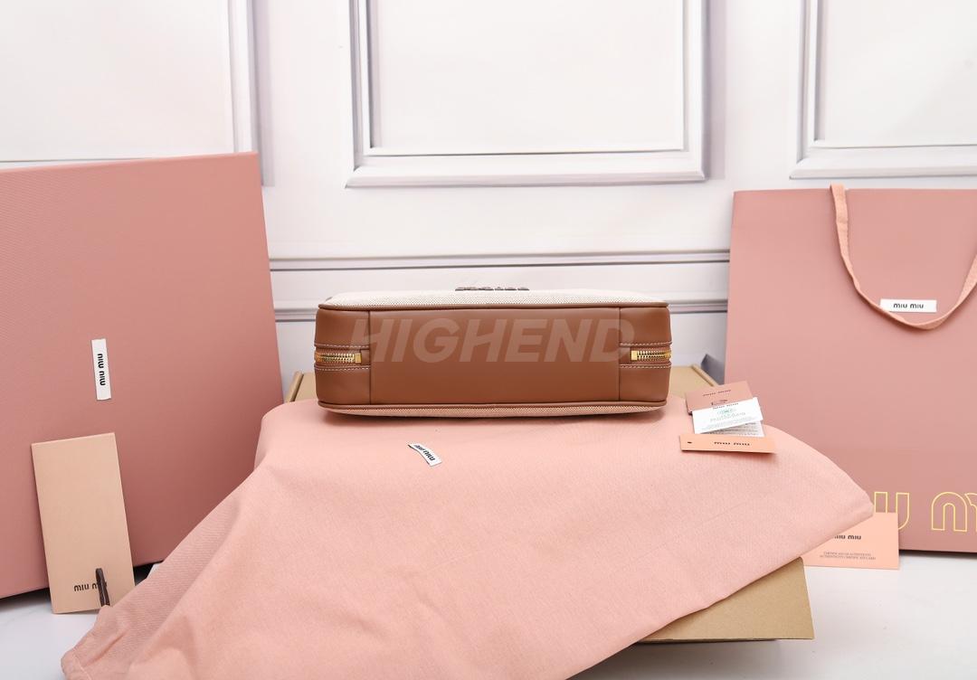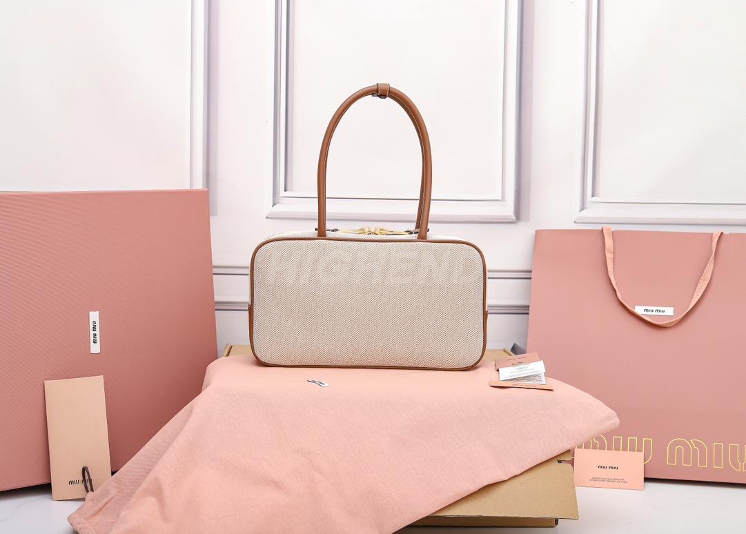 미우미우 캔버스 및 가죽 보 백 베이지