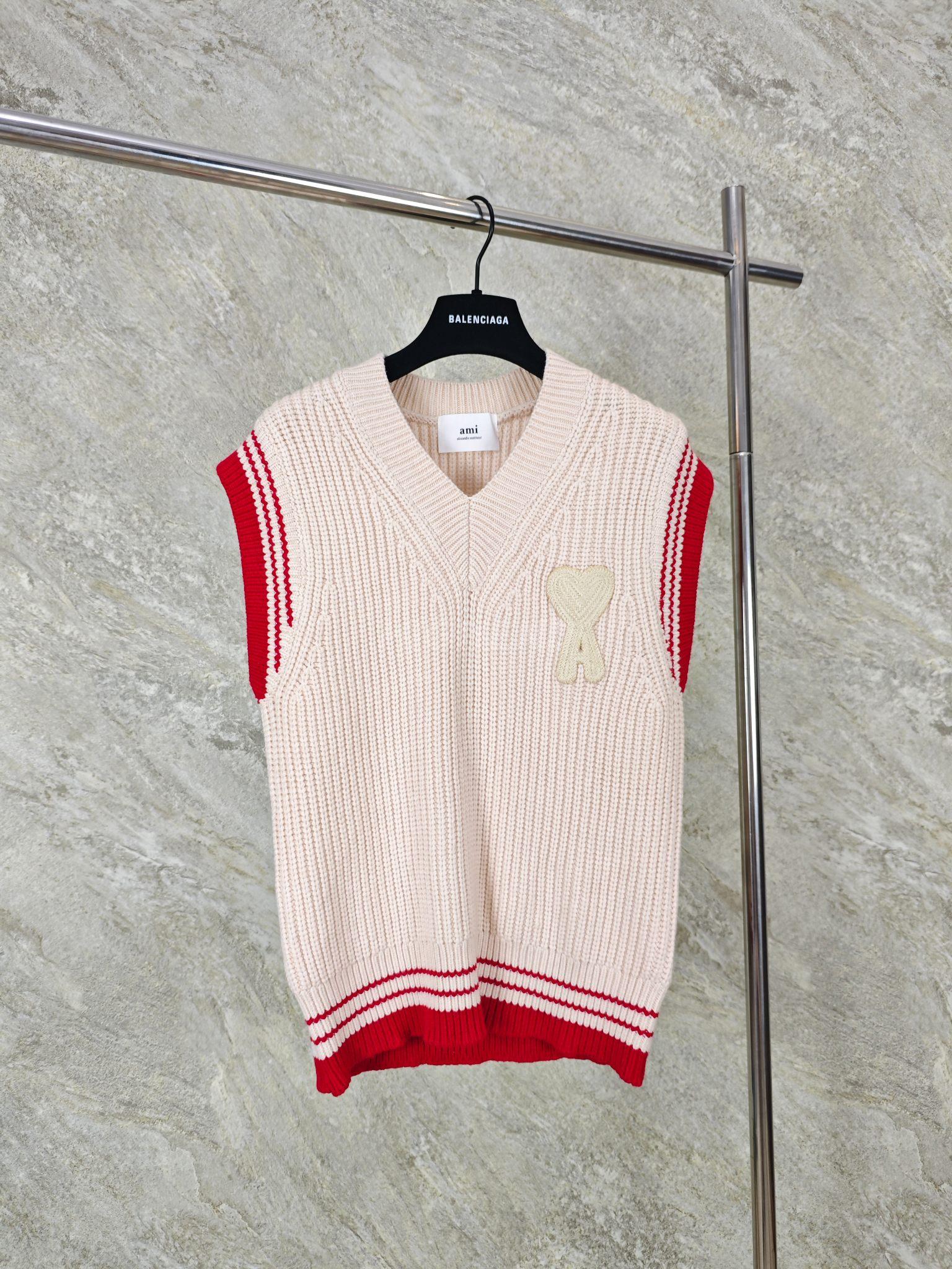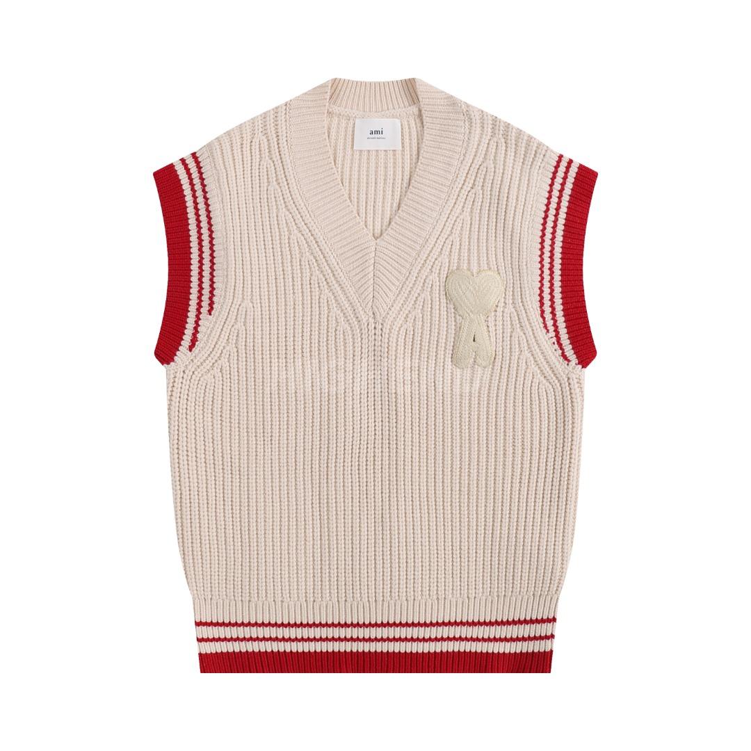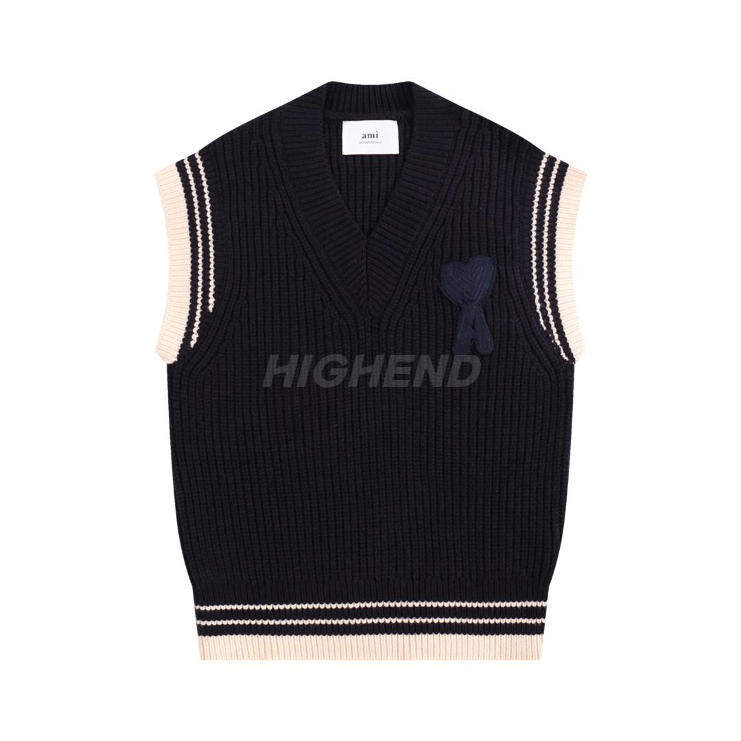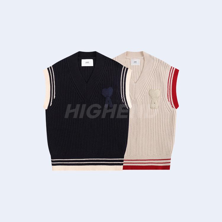 아미(AMI) 하트 로고 자수 울 니트 베스트 2COLOR (NAVY)(IVORY)