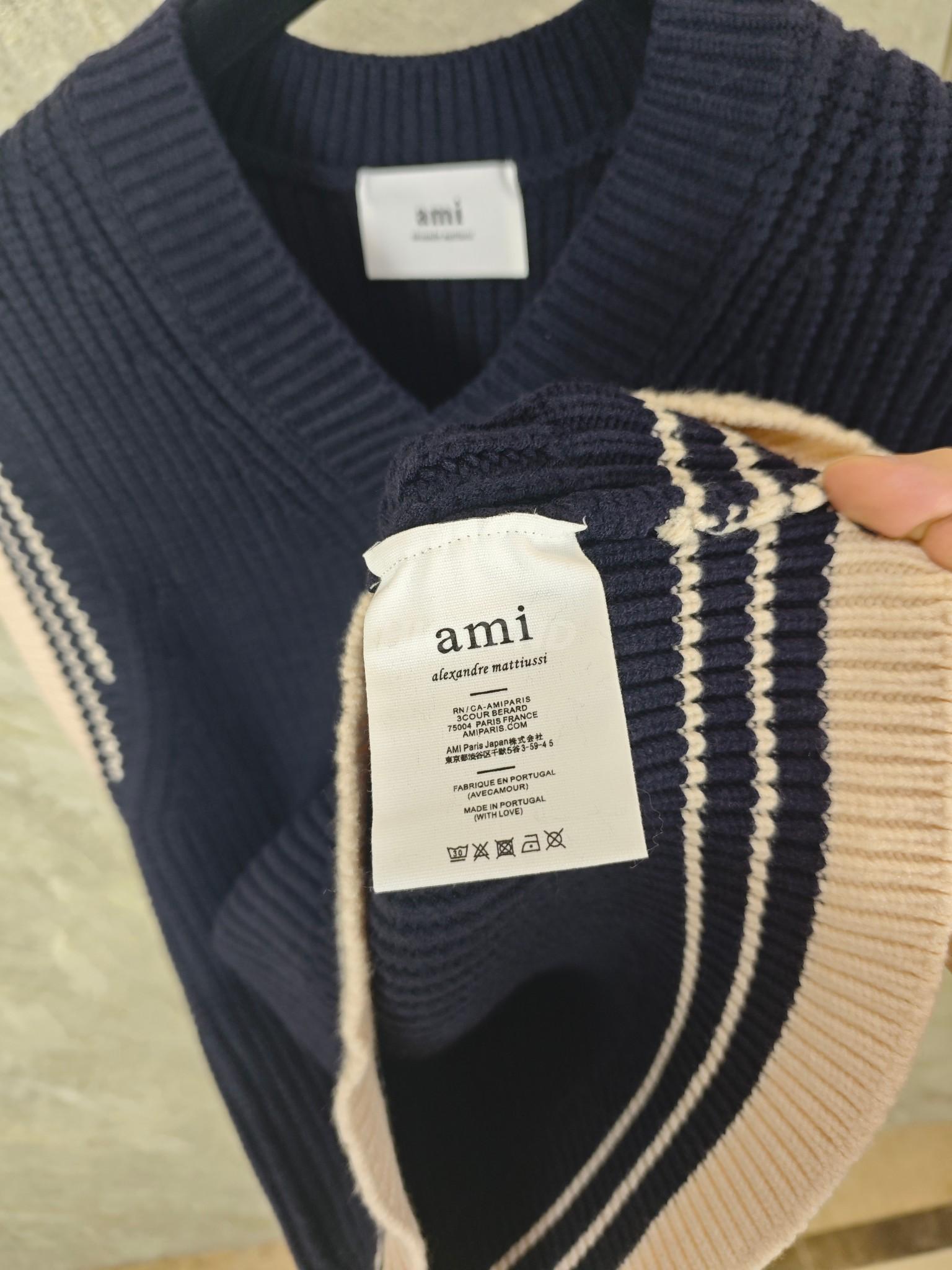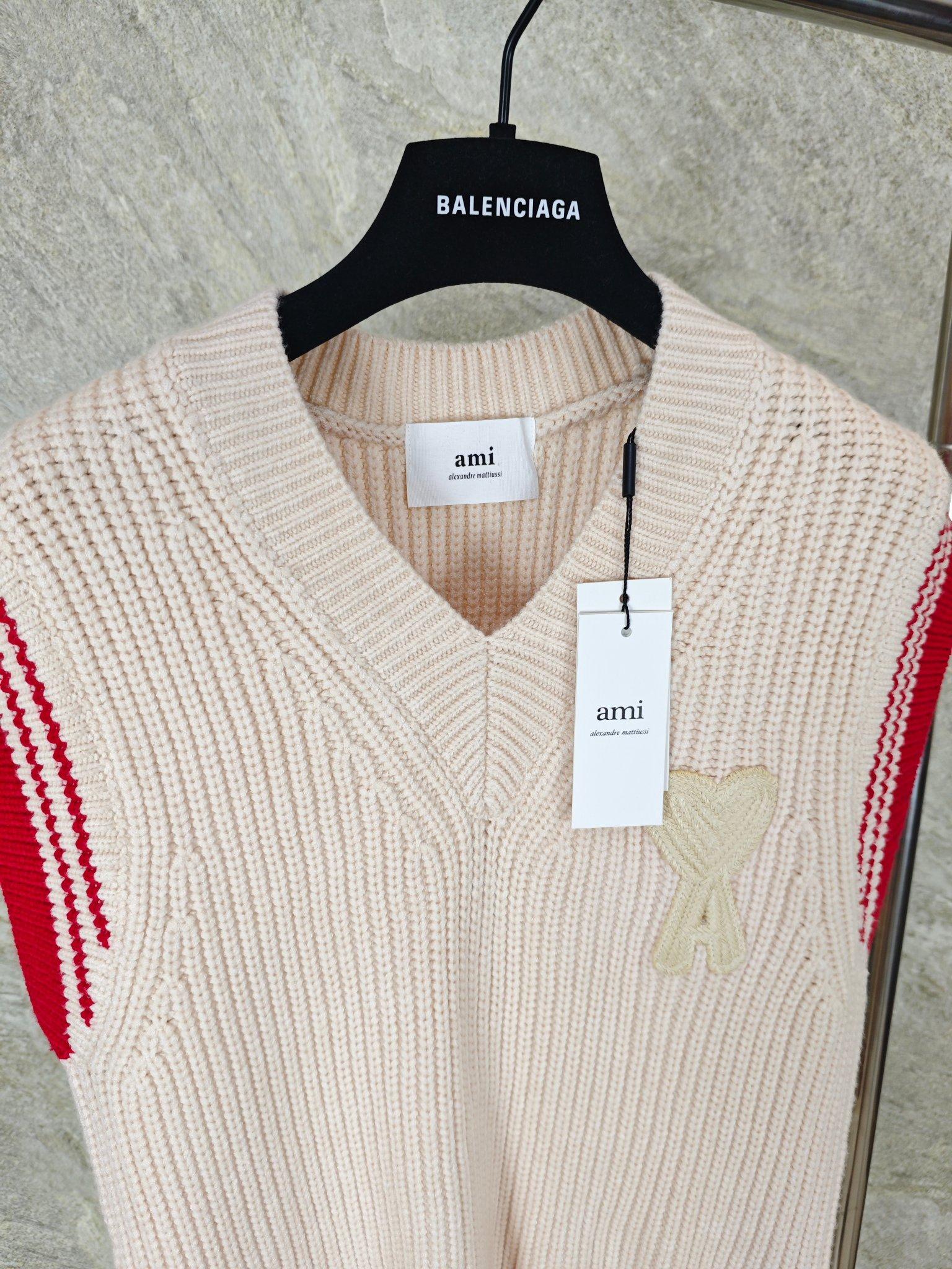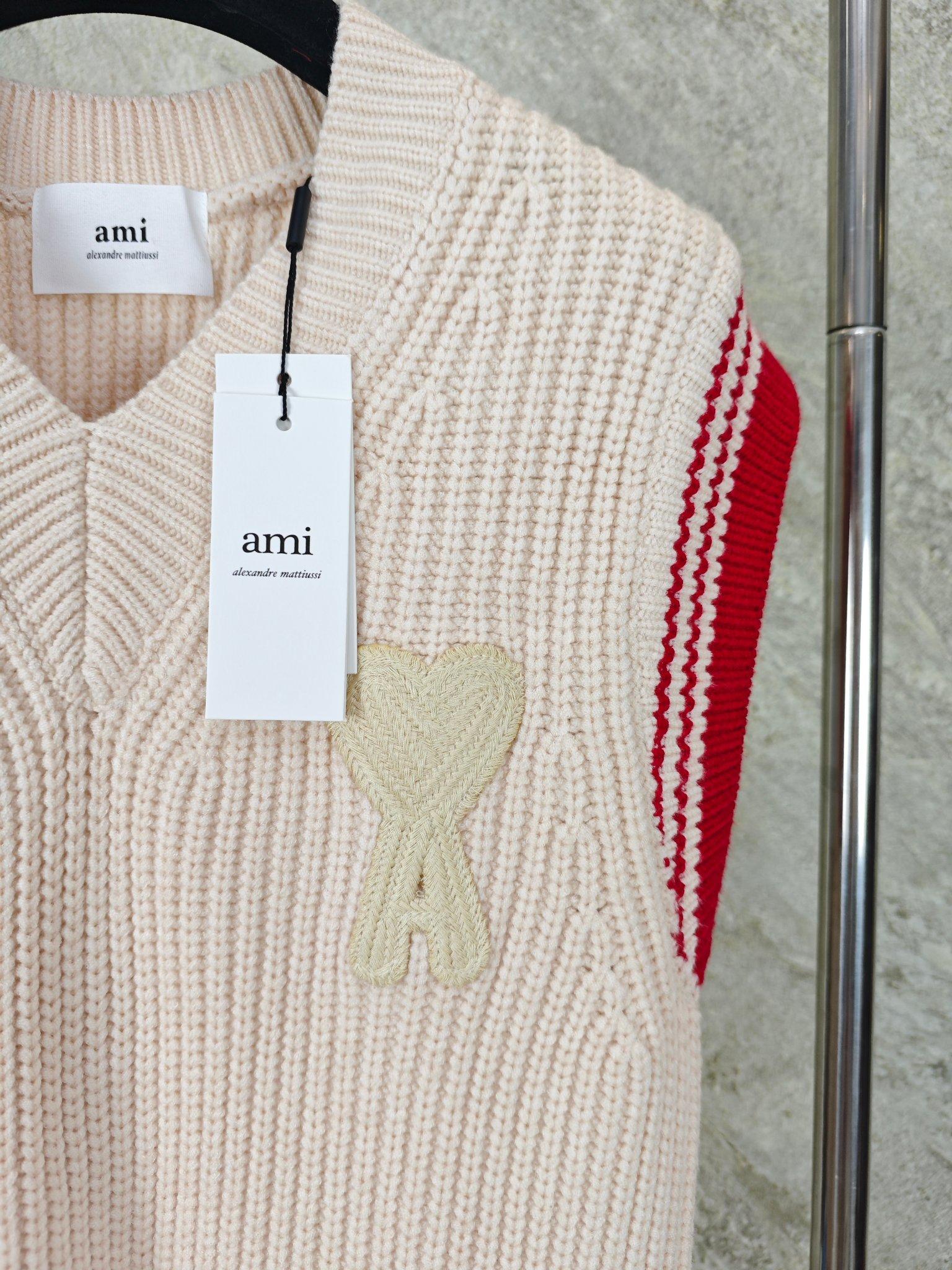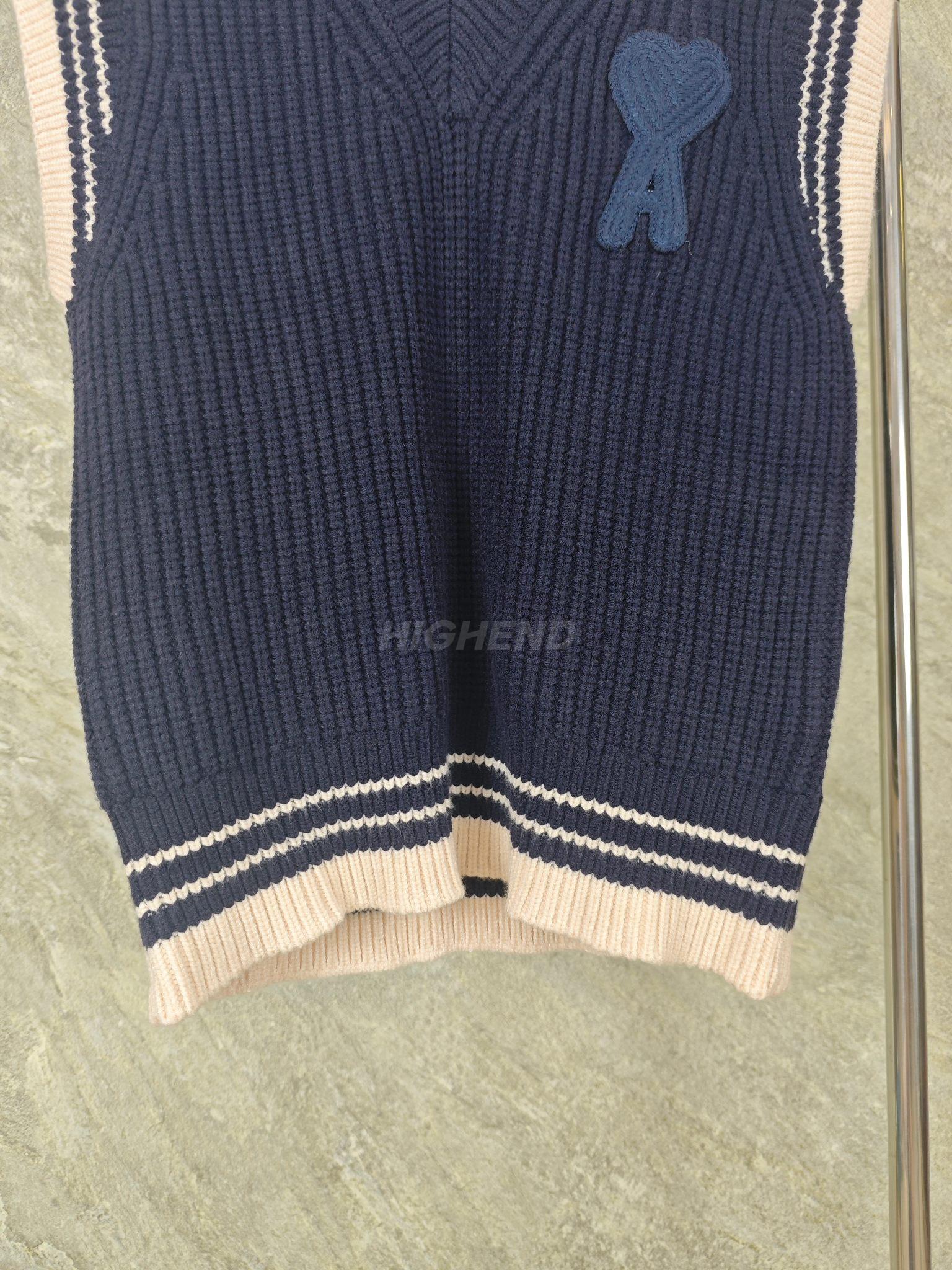 아미(AMI) 하트 로고 자수 울 니트 베스트 2COLOR (NAVY)(IVORY)