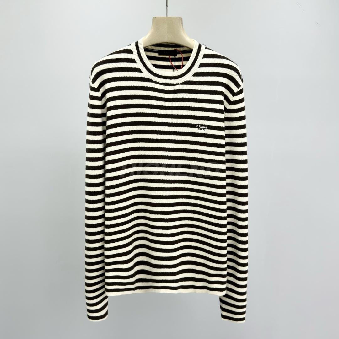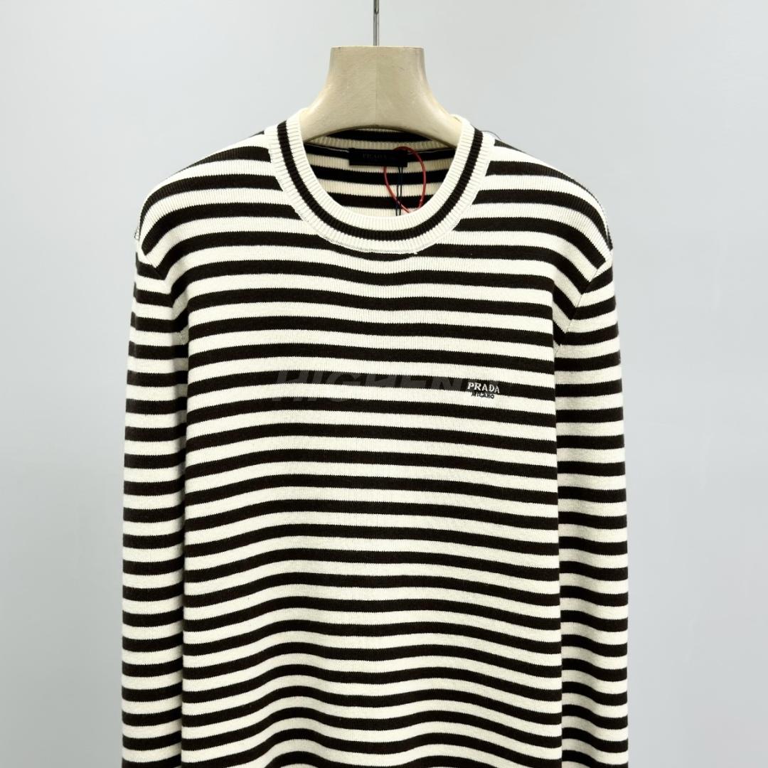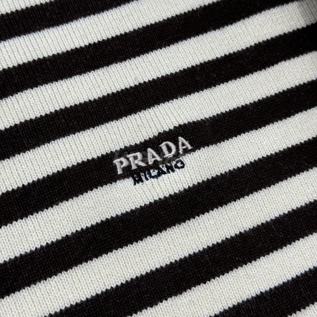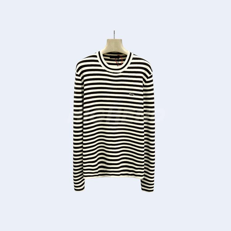 프라다 스트라이프 자수 라운드넥 긴팔 니트 의류